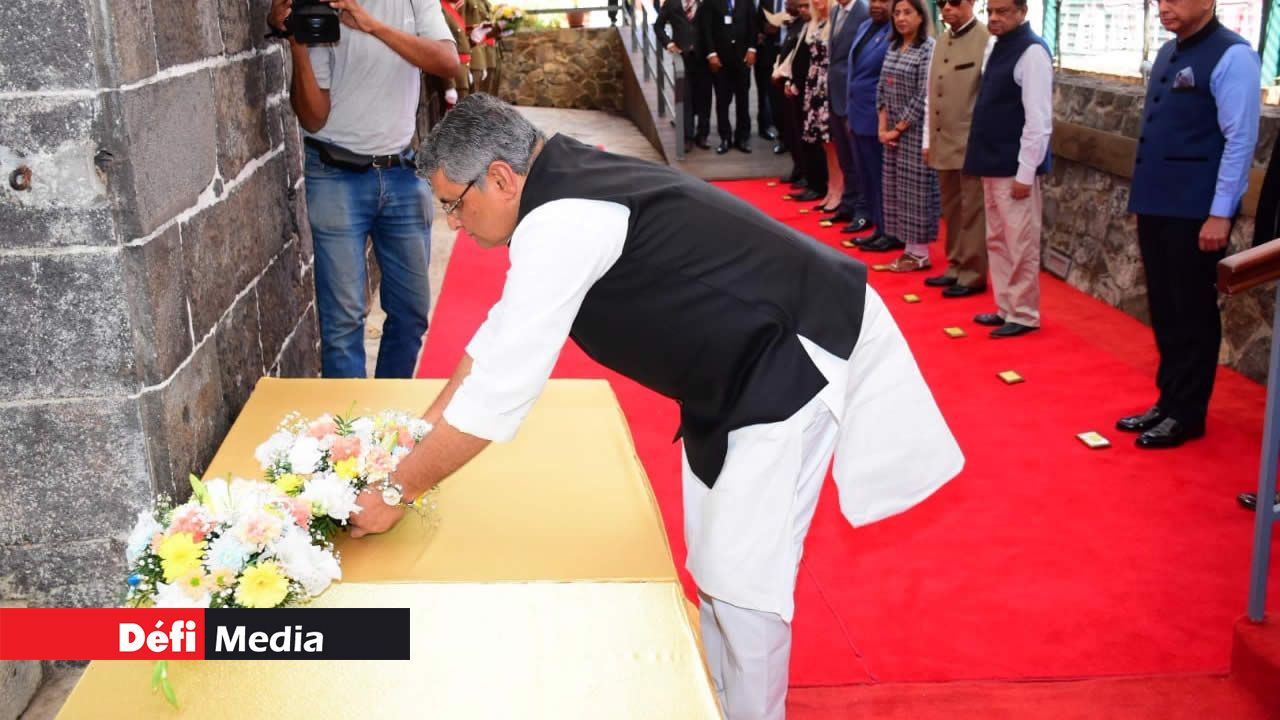 Une cérémonie officielle a lieu à l'Aapravasi Ghat, à Port-Louis, en présence du Premier ministre, Pravind Jugnauth, du leader de l'Opposition, Xavier-Luc Duval, et d'autres parlementaires, ce matin, pour rendre hommage aux premiers travailleurs engagés.