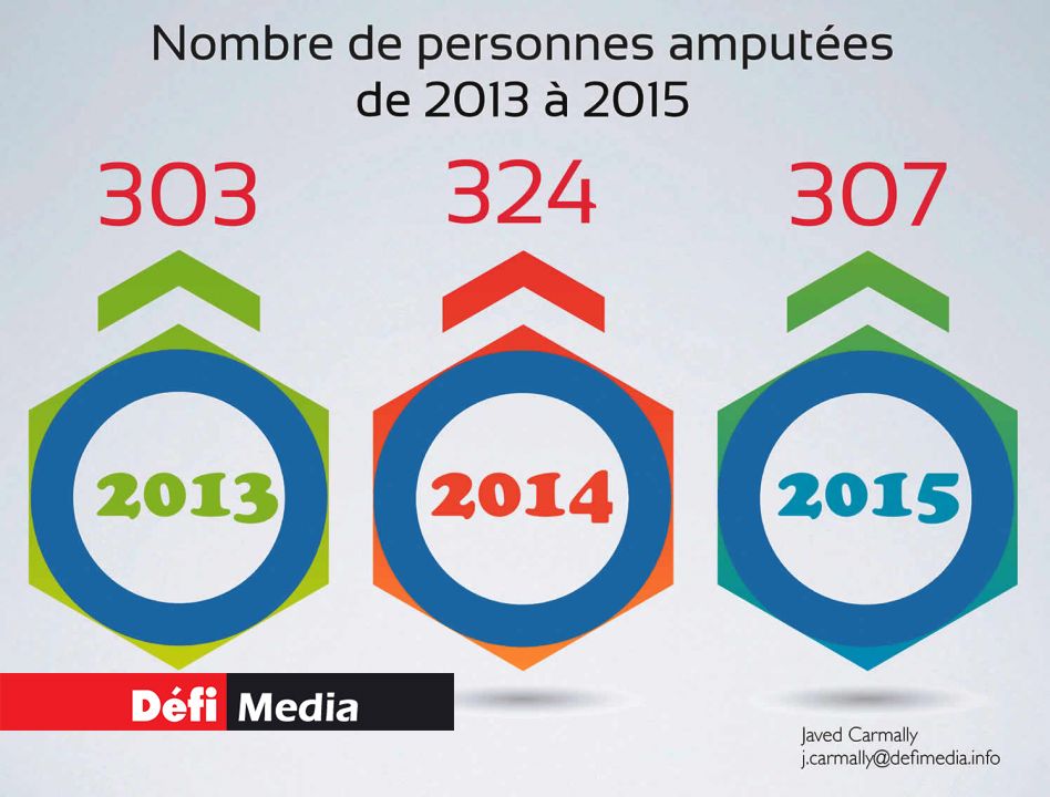 Les chiffres du ministère de la Santé indiquent une moyenne de 300 cas d’amputations chaque année. Toutefois, en raison de complications liées au diabète, certains doivent subir d’autres amputations. Le nombre de nouvelles amputations se comptabilise comme suit : 303 en 2013 ; 324 en 2014 ; et 307 en 2015.
