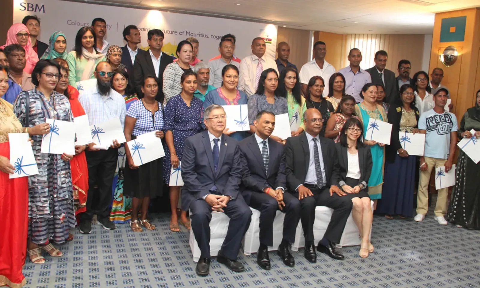 La cérémonie a eu lieu mercredi à la SBM Tower à la Place d’Armes, Port-Louis, en présence du ministre mentor, sir Anerood Jugnauth, de lady Sarojni Jugnauth et des membres du conseil de la SBM, entre autres Kee Chong Li Kwong Wing, le Group Chairman de SBM Holdings Ltd, a réitéré la volonté de la SBM de se positionner comme une banque proche de la nation mauricienne, comme depuis sa création en 1973.