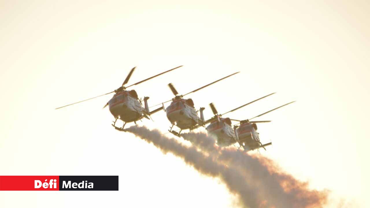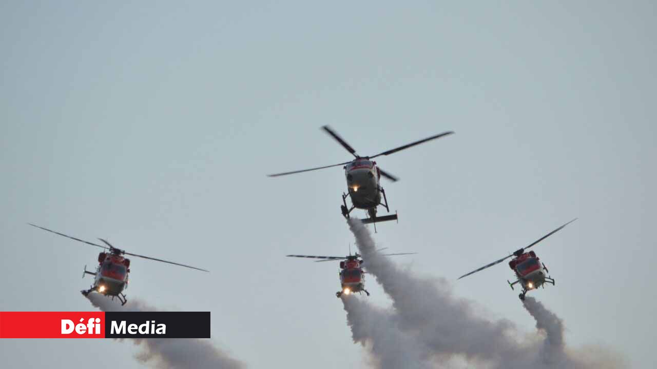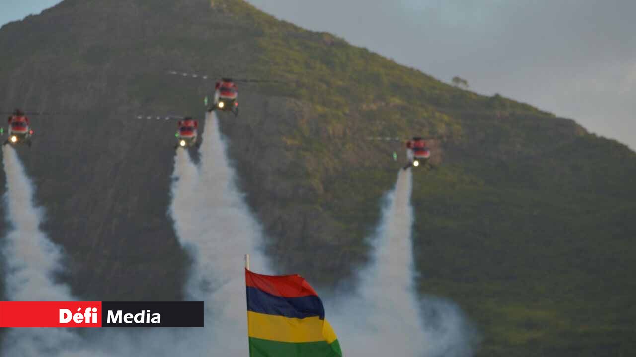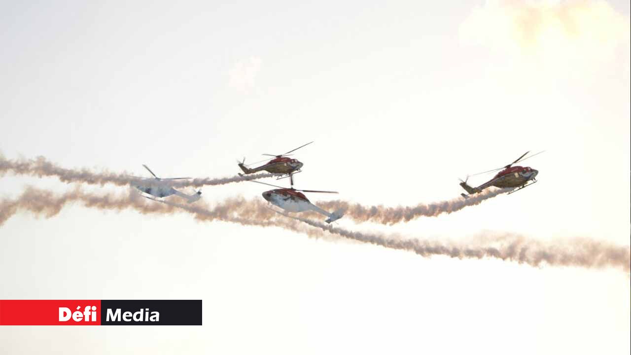 L'un des points forts de la soirée a été le spectacle aérien offert par les hélicoptères de Maurice, des Forces armées de la Zone Sud de l'océan Indien et de l'équipe Sarang de l'Indian Air Force. Cette dernière a réalisé plusieurs figures qui ont laissé le public bouche bée.