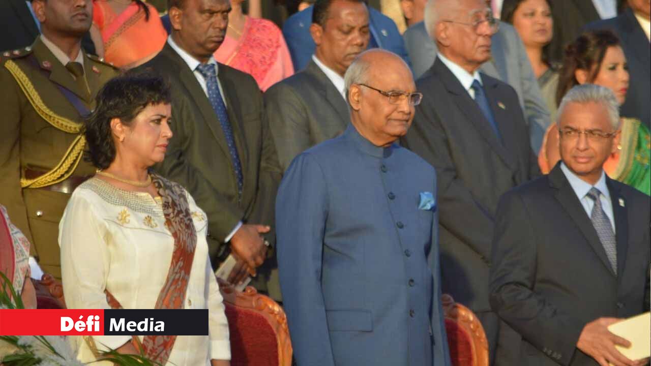 C'est à 18 heures que le quadricolore mauricien a été hissé en haut du mât, sous les regards du Premier ministre Pravind Jugnauth, de la présidente de la République Ameenah Gurib-Fakim et du ministre des Arts et de la Culture Pradeep Roopun. Étaient également présents l'invité d'honneur de ces célébrations, le président de l'Inde Ram Nath Kovind, et son épouse Savita.