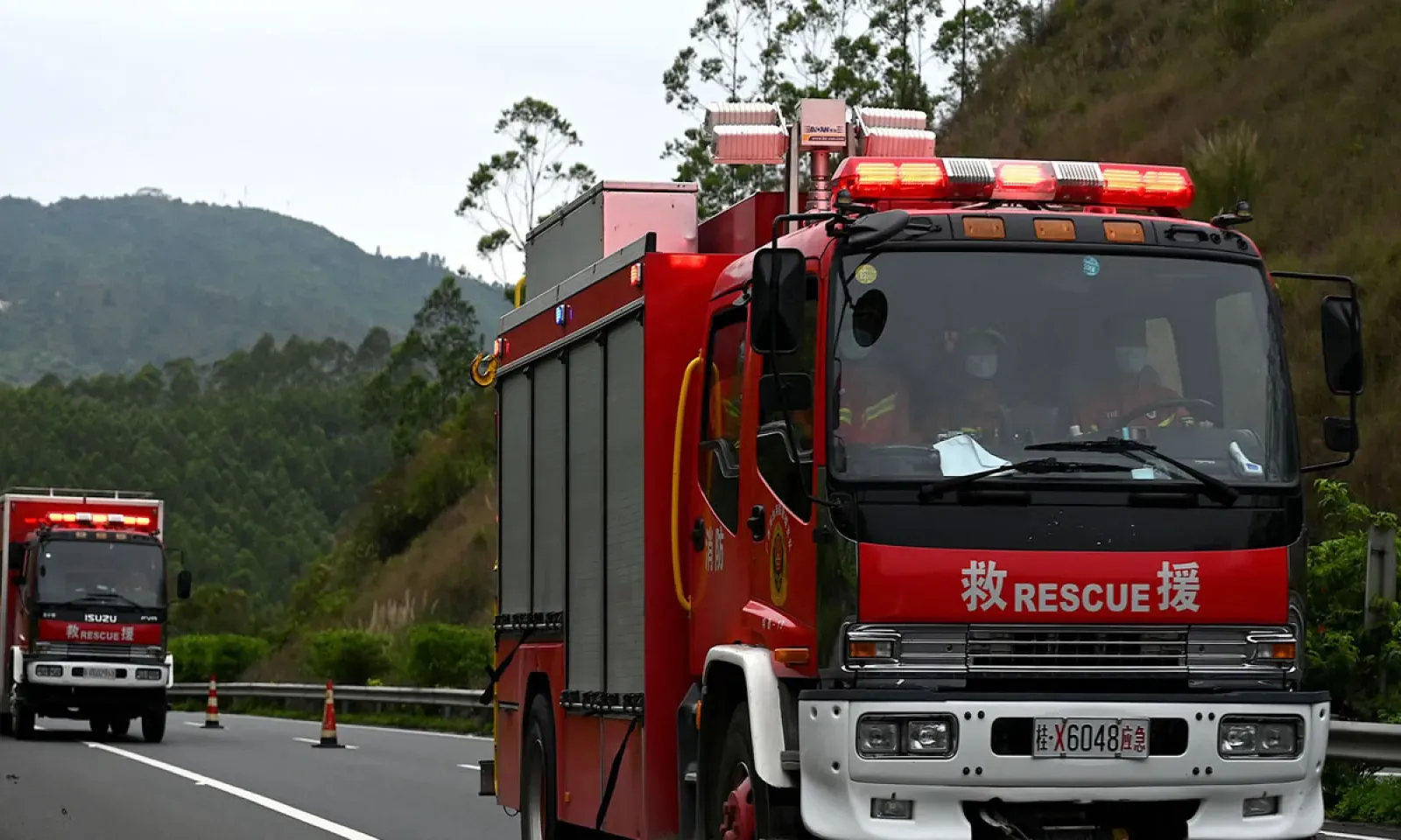 La télévision publique CCTV a diffusé mardi des images de sauveteurs en treillis ou en blouse blanche, portant des civières et des sacs à dos, en train d'évoluer avec difficulté sur les collines des environs de l'accident.