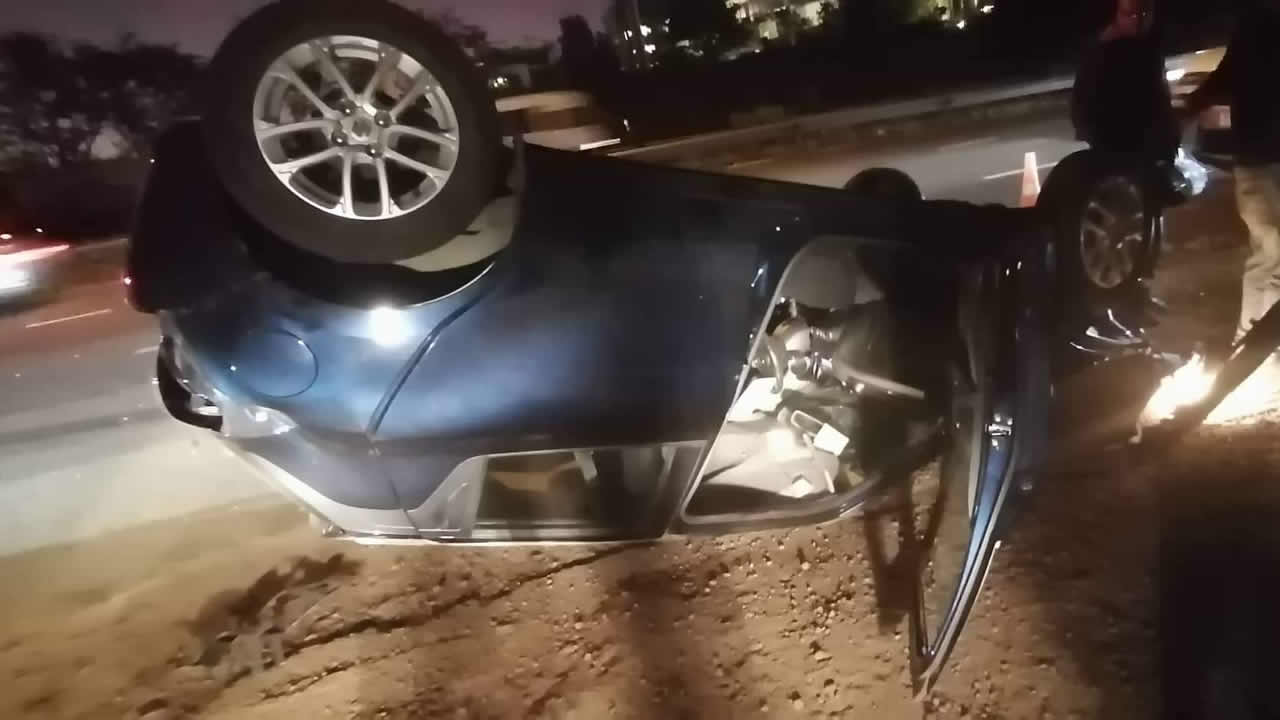 C’est vers 19 heures mercredi que la police de Rose-Hill s’est rendue sur l’autoroute M1, après le pont Matar, à Ébène, en direction du Sud. Les policiers ont constaté qu’une Mercedes et une Suzuki, étaient impliquées dans un accident. Une des voitures s’était retrouvée les quatre roues en l’air. Des automobilistes s’étaient arrêtés à la vue de cette scène. Les limiers ont vite pris connaissance que c’est une conductrice de 36 ans, domiciliée à Phoenix, qui était au volant de la Suzuki. Elle a été blessée au pied. Les policiers ont fait le nécessaire pour qu’elle soit transportée à l’hôpital Wellkin.