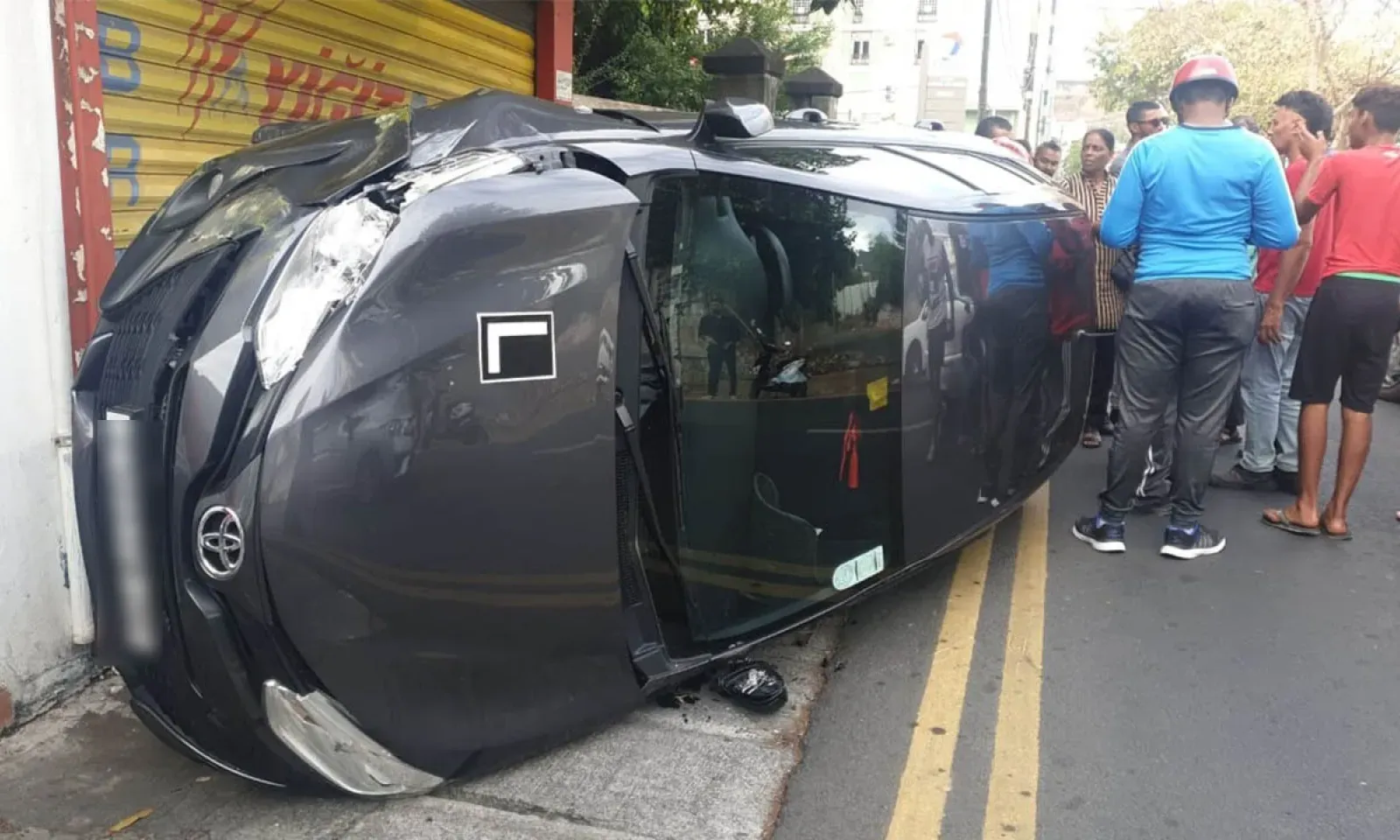 Accident de la route, rue Labourdonnais, à Port-Louis, ce dimanche 27 septembre. Vers 16 heures, une voiture, avec deux personnes à son bord, un homme et son épouse, a heurté un autre véhicule sur le côté gauche, pour aller percuter les grilles d’un garage puis s'écraser sur son flanc gauche.