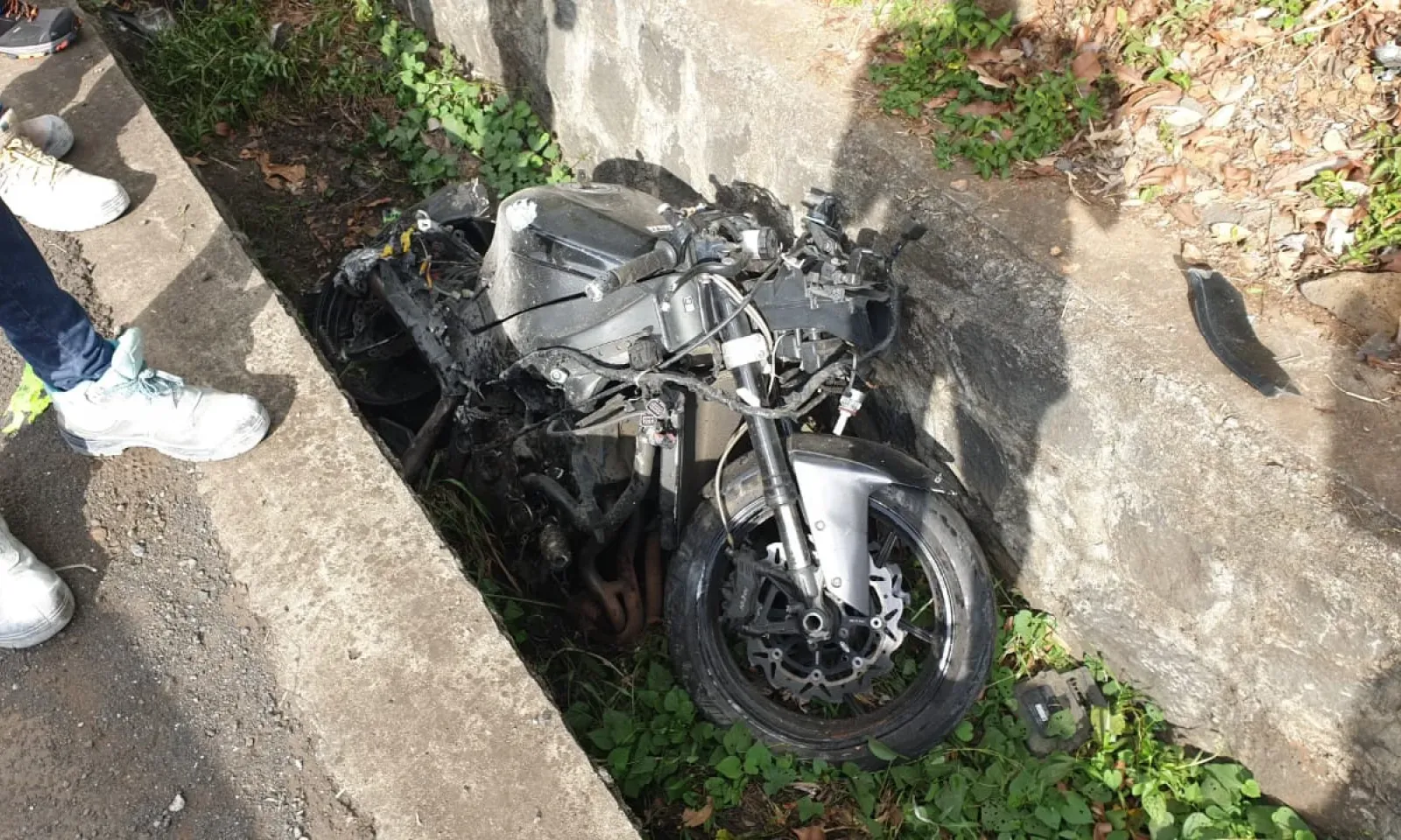 Le deux-roues a fait une sortie de route avant de terminer sa course contre un parapet.