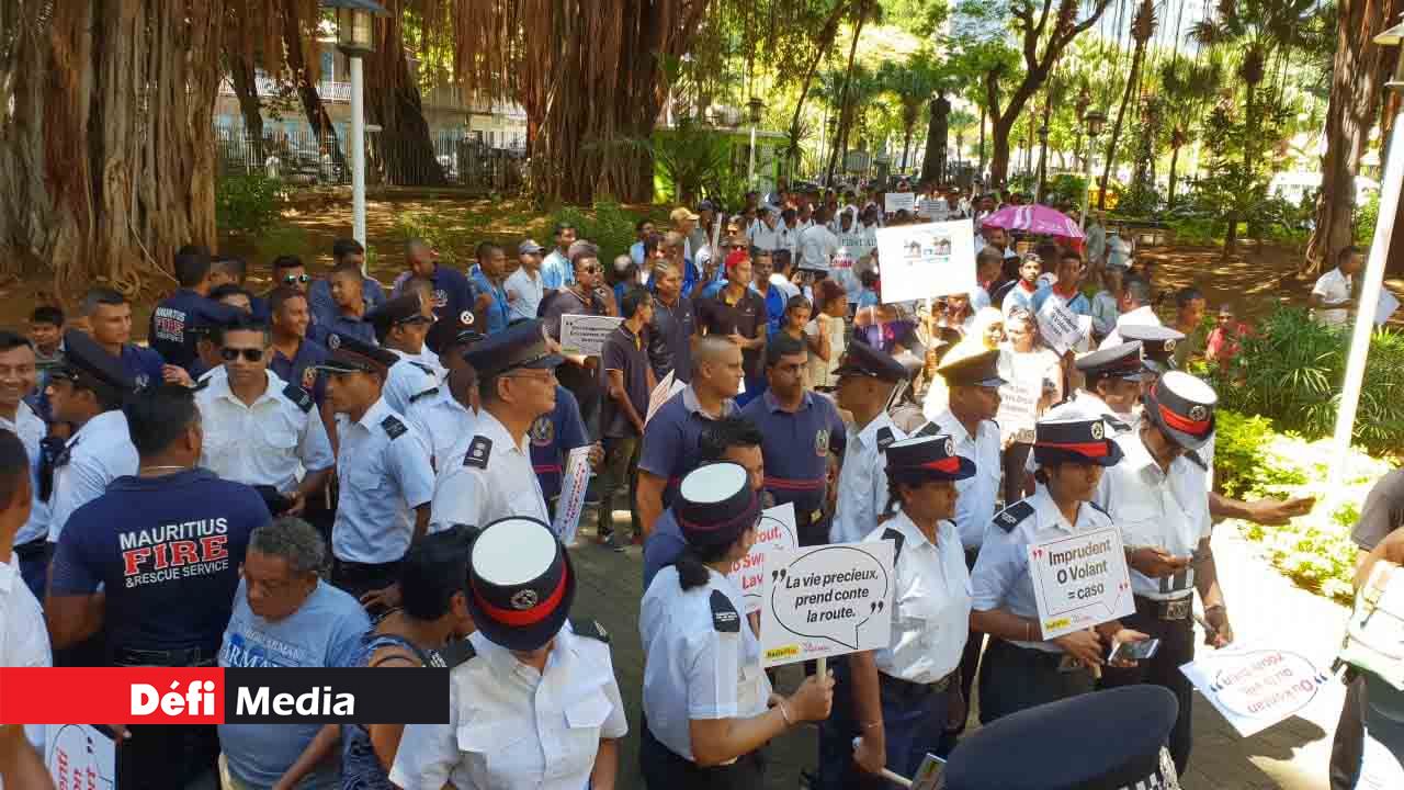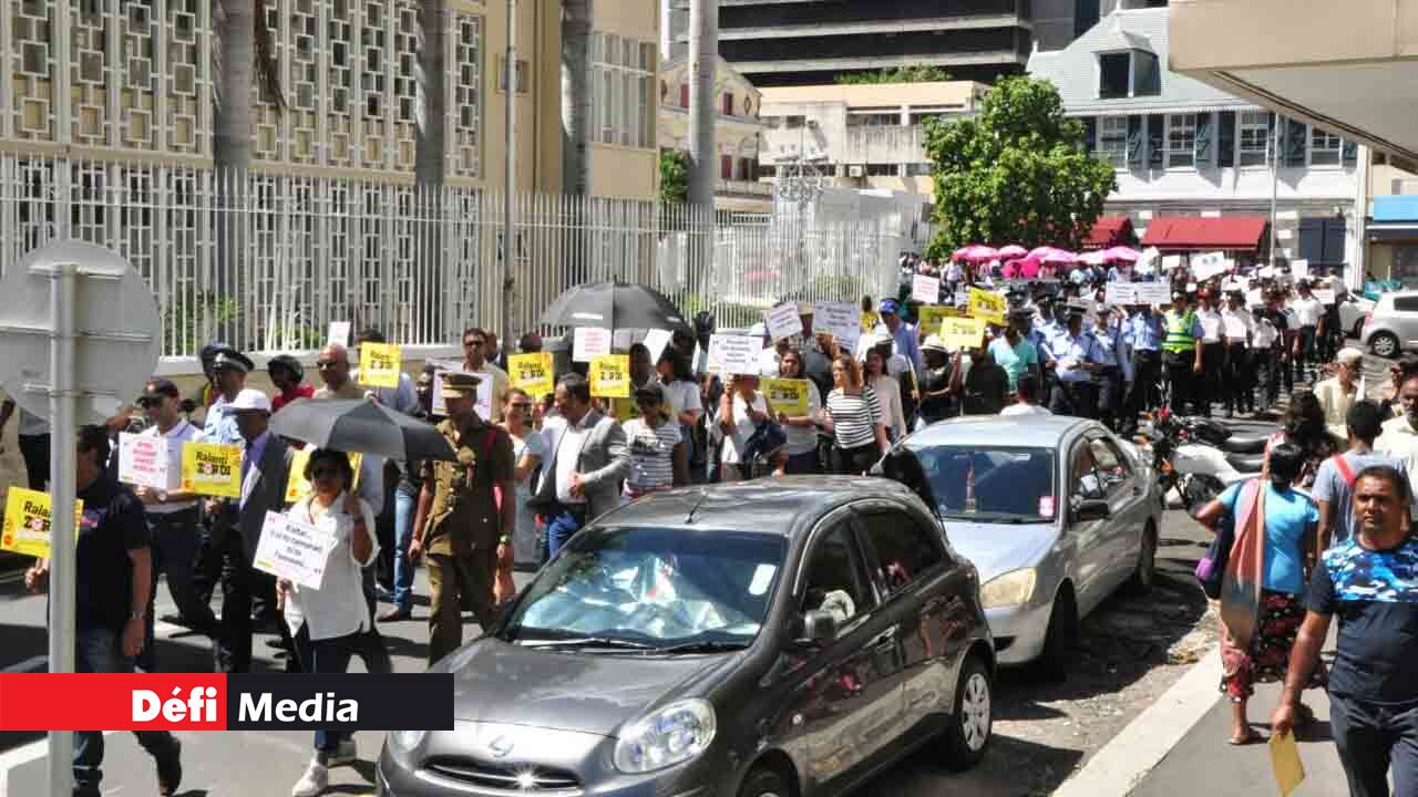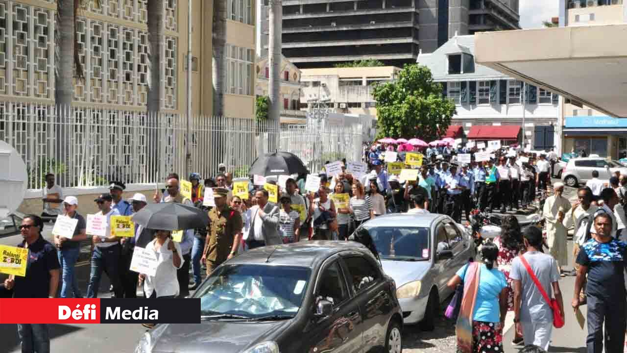 Le président de la République par intérim Barlen Vyapoory et le Chief Whip Bobby Hurreeram se sont joints à la foule.
