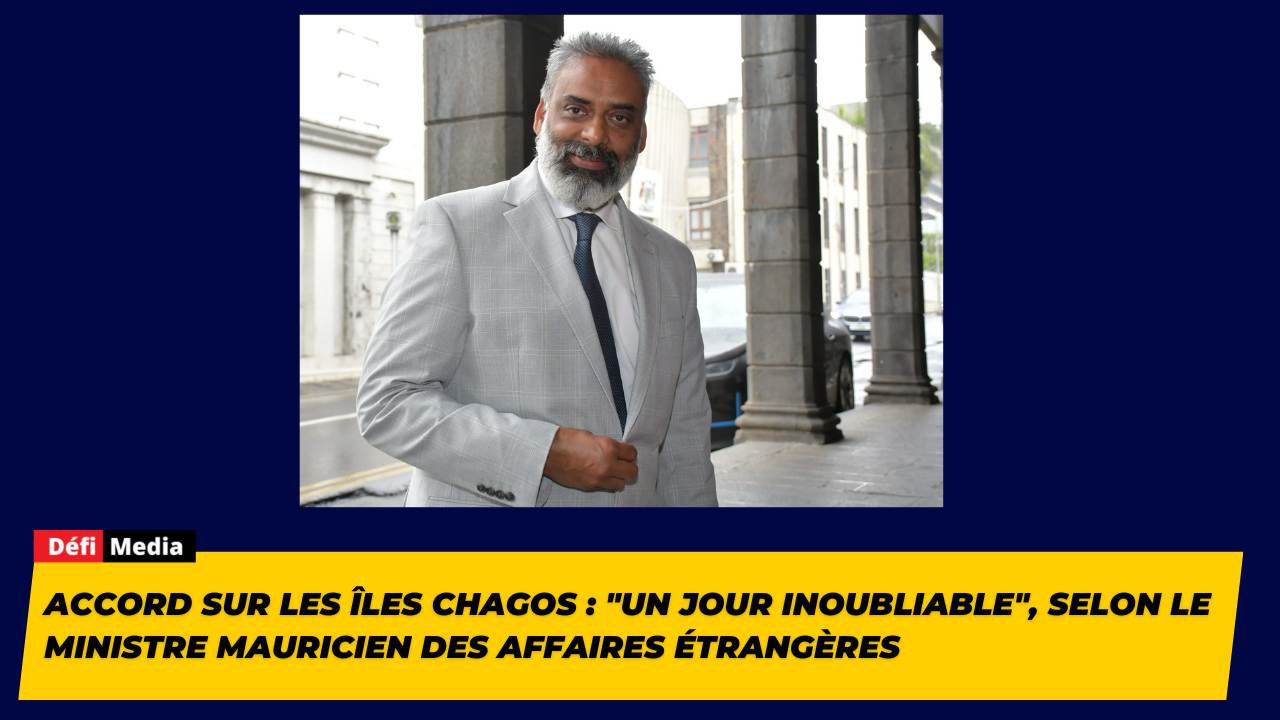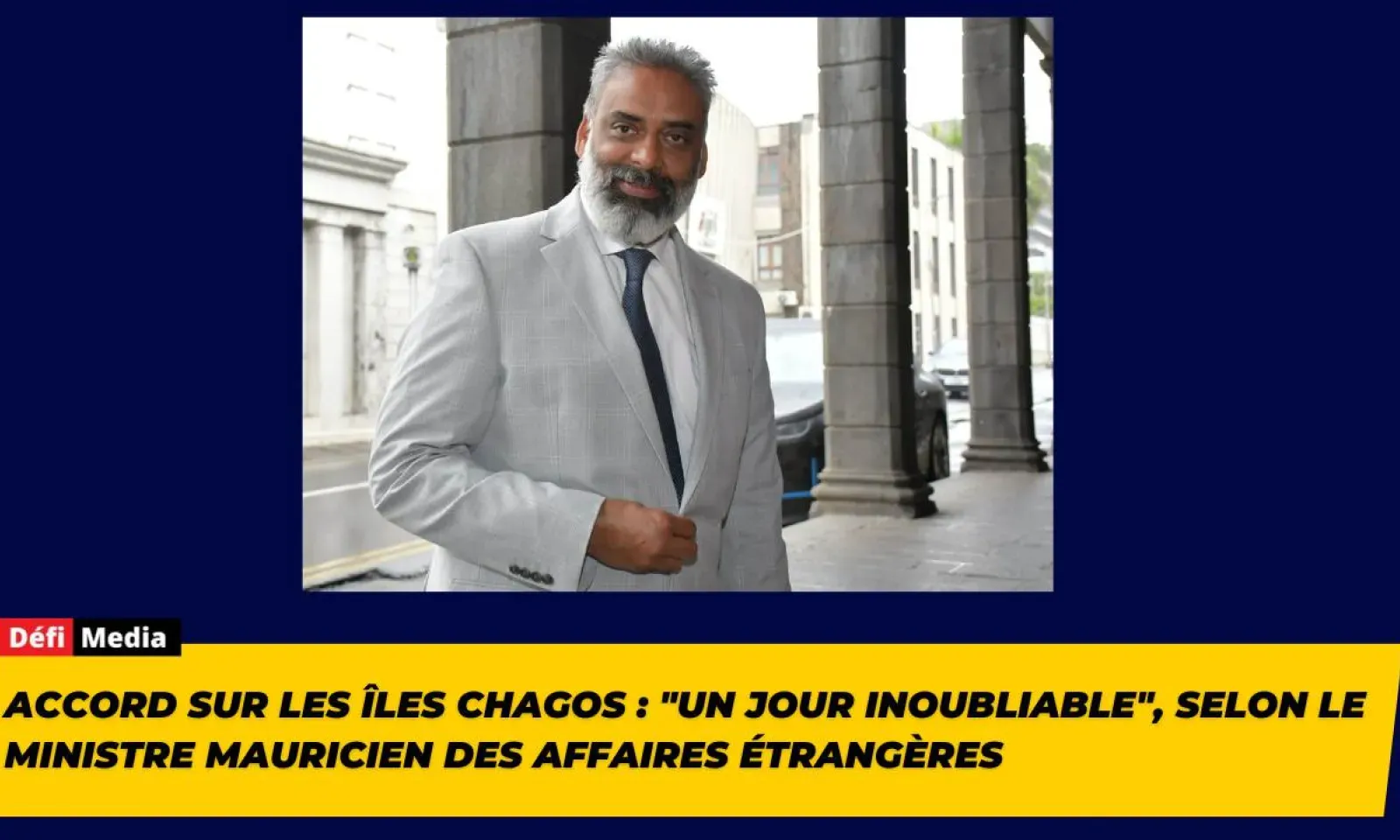 L'accord trouvé entre le Royaume-Uni et l'île Maurice sur la souveraineté de l'archipel des Chagos dans l'océan Indien marque "un jour inoubliable", s'est félicité jeudi le ministre mauricien des Affaires étrangères, Maneesh Gobin.