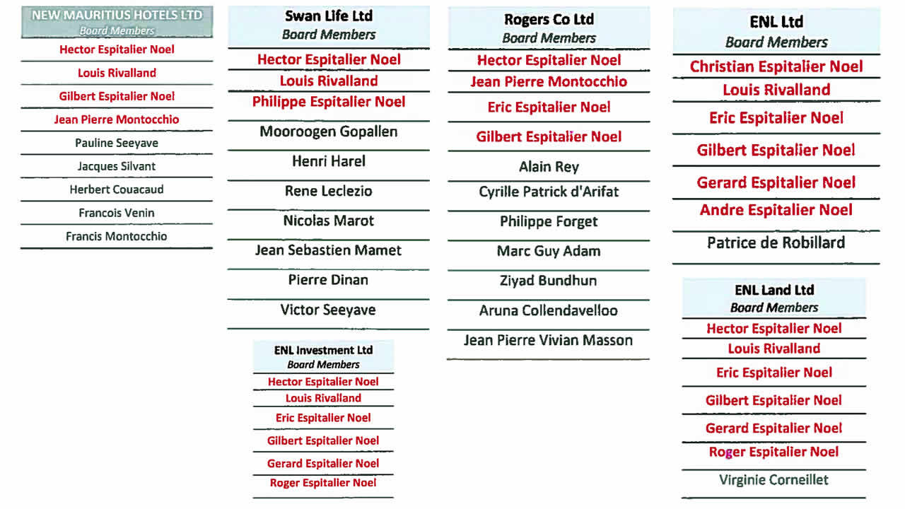 Sunnystars Resorts Holdings Ltd (SRH) accuse Hector Espitalier-Noël, Chief Executive Officer du groupe ENL, d’avoir bloqué la vente de 9,4 % d’actions de New Mauritius Hotels (NMH), par Property and Development Ltd (PAD) et Taylor Smith Group en février 2016. La compagnié soutient n’avoir pu acheter les actions en question. Il ressort d’un document de sept pages rédigées par l’avouée Komadhi Mardemootoo que cela aurait été fait dans le but de permettre à Swan Life Ltd, ENL et Rogers de s’approprier ces actions. Ce document a été expédié à la Financial Services Commission (FSC) et au Registrar of Companies, le mercredi 22 mars.