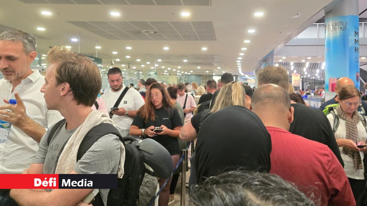 Les passagers quittant le pays ce soir font face à une situation frustrante : une longue file d’attente s’est formée au service d’immigration de l’aéroport de Plaisance. Les comptoirs sont vides.