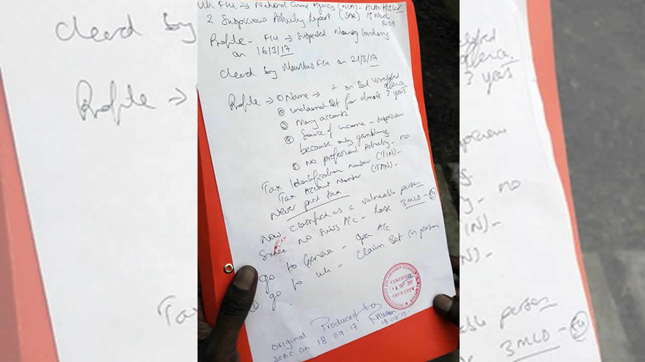 Ceci n’explique pas le contenu de ces lettres écrites à la main et sur lesquelles reposent en grande partie les allégations de blanchiment. « Il n’était aucunement question de blanchir de l’argent, mais de venir en aide à Husein Abdool Rahim qui avait fait croire qu’il avait des millions d’euros bloqués sur son compte Bet365 en Grande-Bretagne. Le premier document écrit à la main expliquait les étapes pour récupérer cet argent en Grande-Bretagne et ensuite le déposer sur un compte qui devait être ouvert à Genève », explique une source proche de Dick Kwan Tat. Et d’ajouter que « ce papier contenait aussi quelques informations sur Husein Abdool Rahim, notamment qu’il n’y avait rien contre lui à la Financial Intelligence Unit. Il n’y a absolument rien d’illégal dans ce papier ».