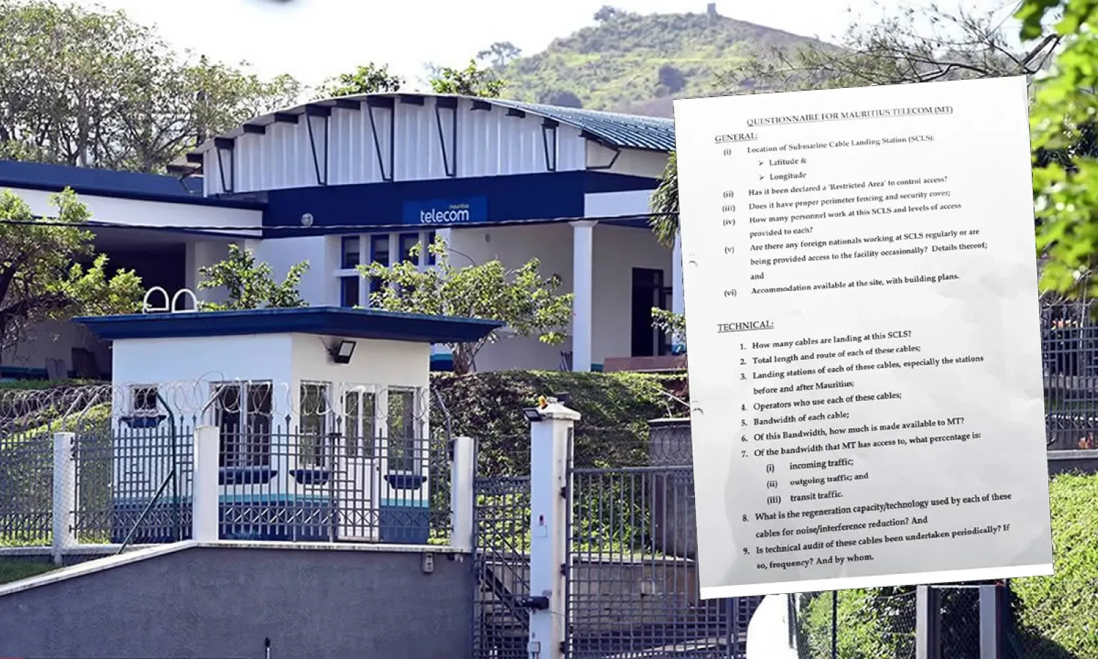 Le questionnaire est divisé en deux parties. La première traite de questions générales, comme l’endroit précis, par exemple, avec les données de longitude et de latitude de la « Landing Station » de Baie-du-Jacotet – par lequel passe le câble sous-marin SAFE qui traite la majorité des données Internet de Maurice. Il y est aussi demandé si l’endroit a été déclaré « Restricted Area » et s’il est bien sécurisé.