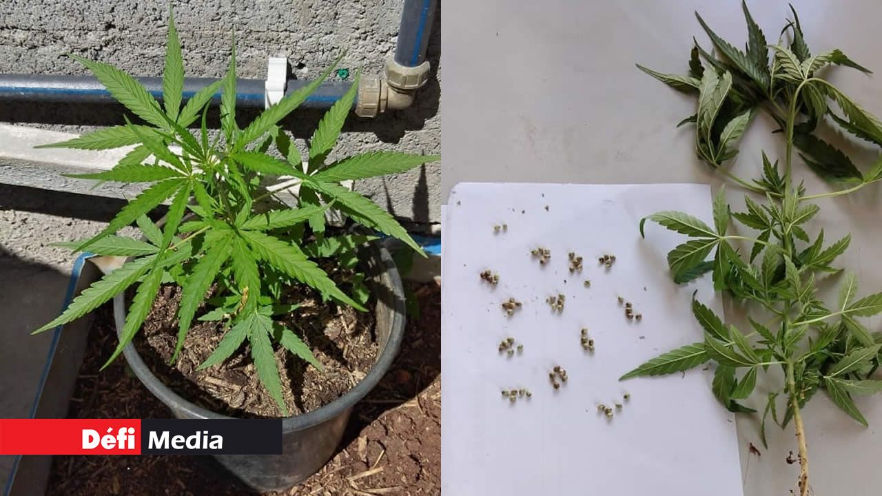 Les recherches se sont poursuivies dans la cour. Lorsque les policiers sont allés sur le balcon, à l’arrière de la maison, à côté des toilettes, ils ont découvert un plant de cannabis, mesurant 35 cm, dans un pot. Interrogé à nouveau, le suspect a lancé : « Kuma travay dan bez, mo finn plant sa depi 2 mois. Mo ti pe atann li pare pou mo kas bann fey la pou vande ».