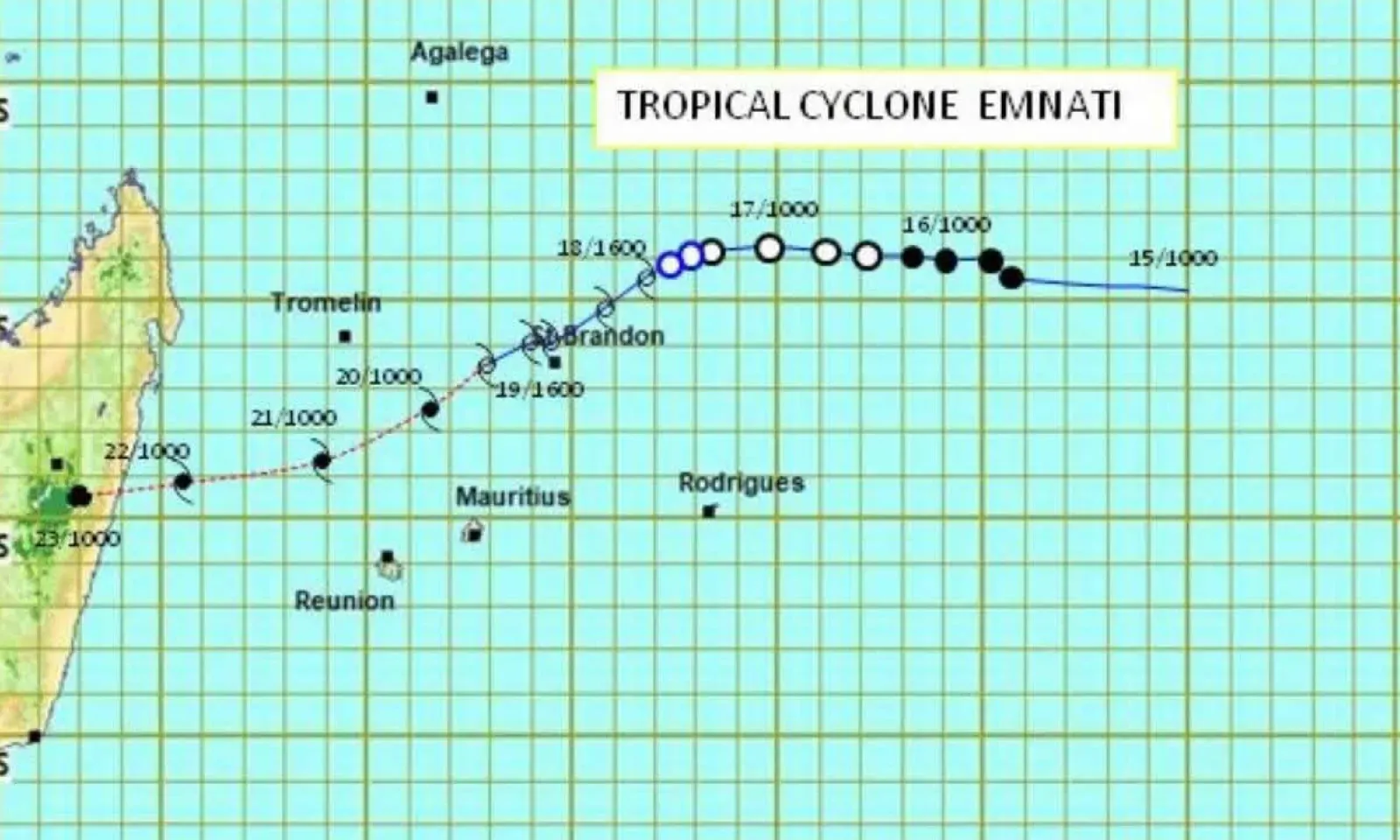 « Des bandes nuageuses actives d'Emnati traverseront l'île de temps à autre, provoquant de fortes pluies accompagnées de fortes rafales dépassant 110 km/h. En cas d’un léger infléchissement dans la trajectoire vers le sud et de légère intensification du cyclone, la possibilité de rafales atteignant 120 km/h existe. Par conséquent, le cyclone tropical Emnati représente une menace directe pour l'île Maurice », avance la station météo de Vacoas.