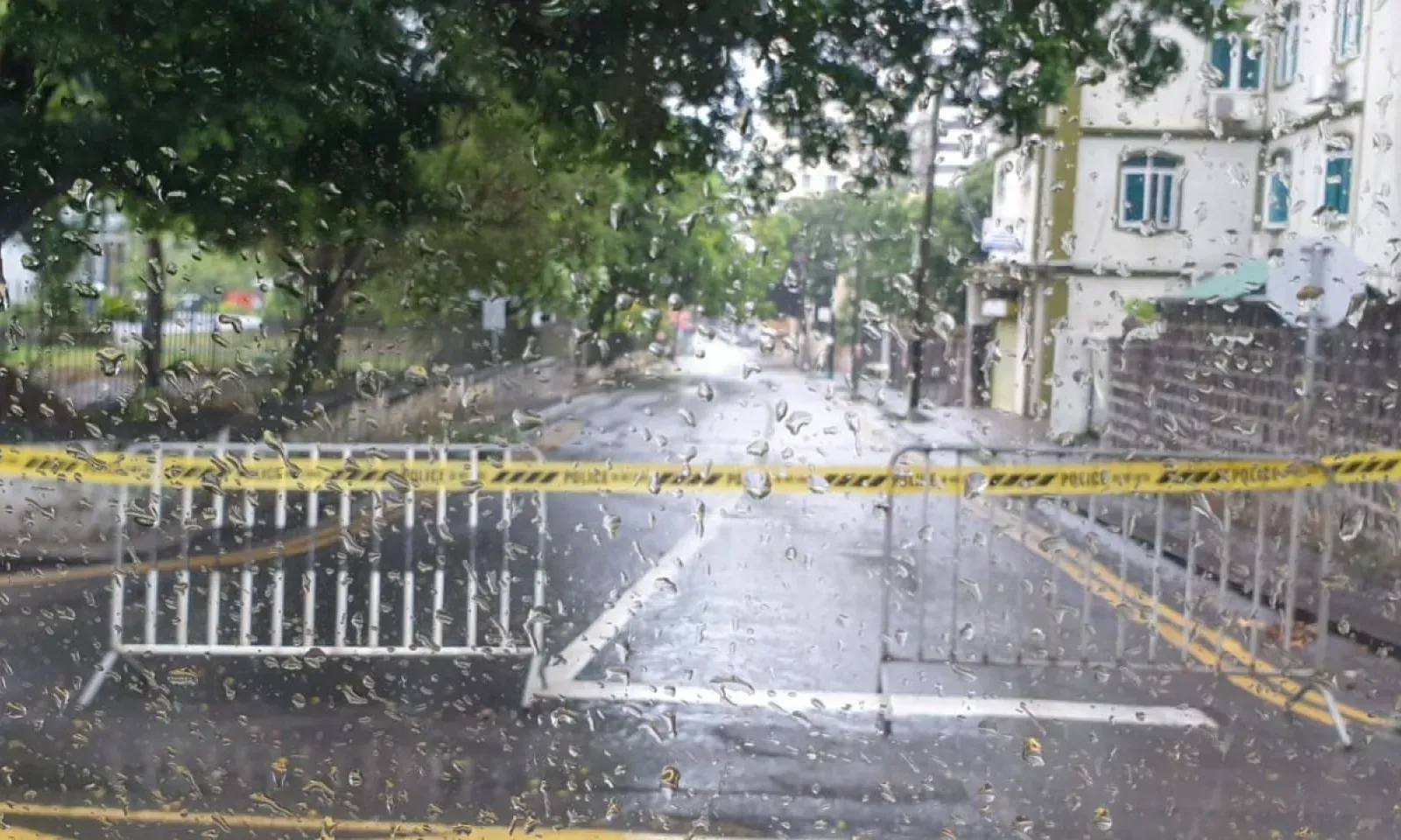 Conditions cycloniques obligent. La rue Poudrière, à Port-Louis, a été fermée à la circulation.