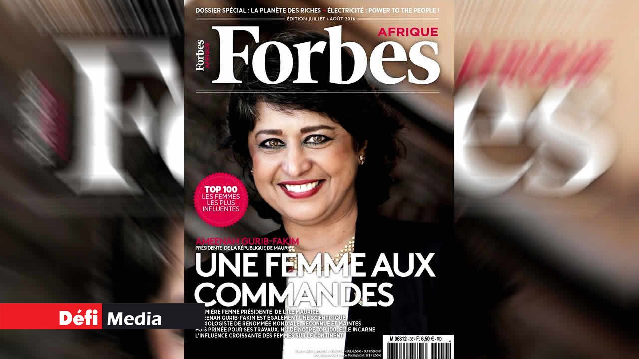 Après s’être classée dans le Top 100 des femmes les plus influentes du monde, selon le fameux magazine Forbes, la présidente de la République Ameenah Gurib-Fakim décroche la première place du classement pour l’Afrique.