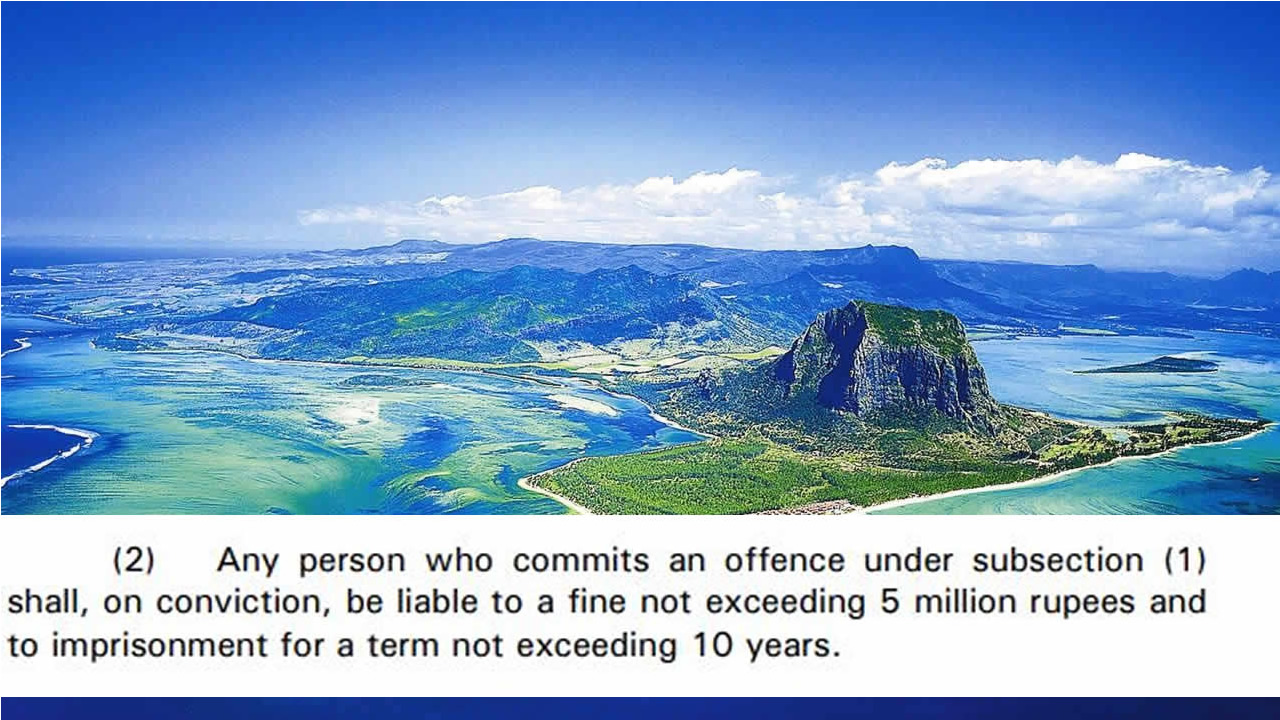Le « Criminal Code (Amendement) Bill » a pour objectif de modifier le code pénal afin de criminaliser entre autres, la production ou la distribution d’un article ou objet véhiculant des informations trompeuses ou fausses sur la souveraineté de Maurice ou sur quelconque partie de son territoire.