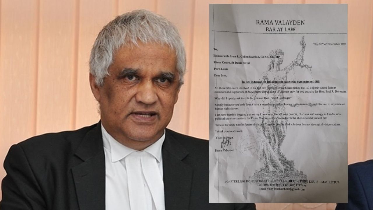 Me Rama Valayden demande à l’ancien ministre de l’Énergie et leader du Muvman Liberater Ivan Collendavelloo de prendre position sur les amendements proposés à l’IBA ACT