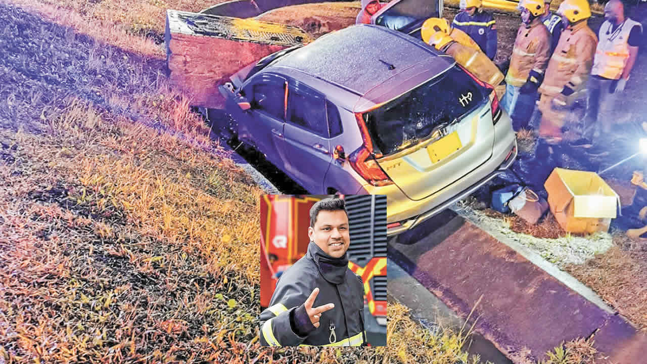 Le pompier a perdu le contrôle de son véhicule sur l’autoroute M3, à hauteur du rond-point de l’Avenir, Saint-Pierre, et a fini sa course contre un muret. L’impact fut violent. Il n’a pas survécu au choc. Quant à son épouse Priska, elle a été extirpée de la voiture dans un état grave. Elle est actuellement admise à l’hôpital Victoria, Candos.
