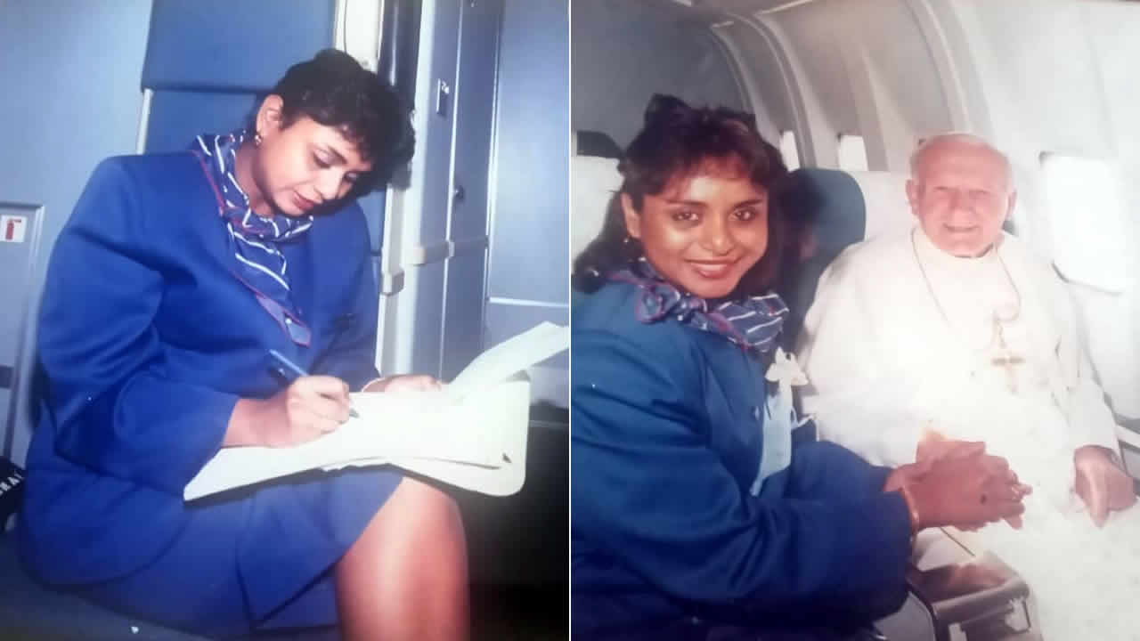 Parmi ses souvenirs marquants, l’un des plus forts reste le vol avec le pape Jean-Paul II. « J’ai eu l’honneur de le servir personnellement avec ma collègue Maryann Garrioch », raconte-t-elle avec émotion. À bord, il y avait également cinq cardinaux, et chaque détail du service devait être exécuté avec une précision absolue. Elle se souvient aussi d’un vol avec la princesse Anne, ainsi que de nombreuses anecdotes cocasses avec les passagers. « Il fallait savoir garder son sérieux dans certaines situations hilarantes », dit-elle.