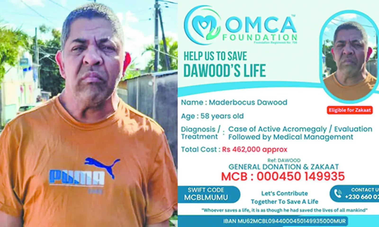 L’hôpital Venkateshwar de Delhi a été identifié comme capable de prendre en charge sa situation. Alertée par son cas, l’OMCA Foundation s’est mobilisée. Après consultation, les médecins indiens ont confirmé la gravité de la situation : Ibrahim Dawood doit être pris en charge sans délai. Le coût global du traitement, du voyage et de la rééducation s’élève à Rs 462 000. Une somme inatteignable pour un homme qui ne gagne que le minimum, mais pas impossible si la solidarité mauricienne s’unit autour de lui.
