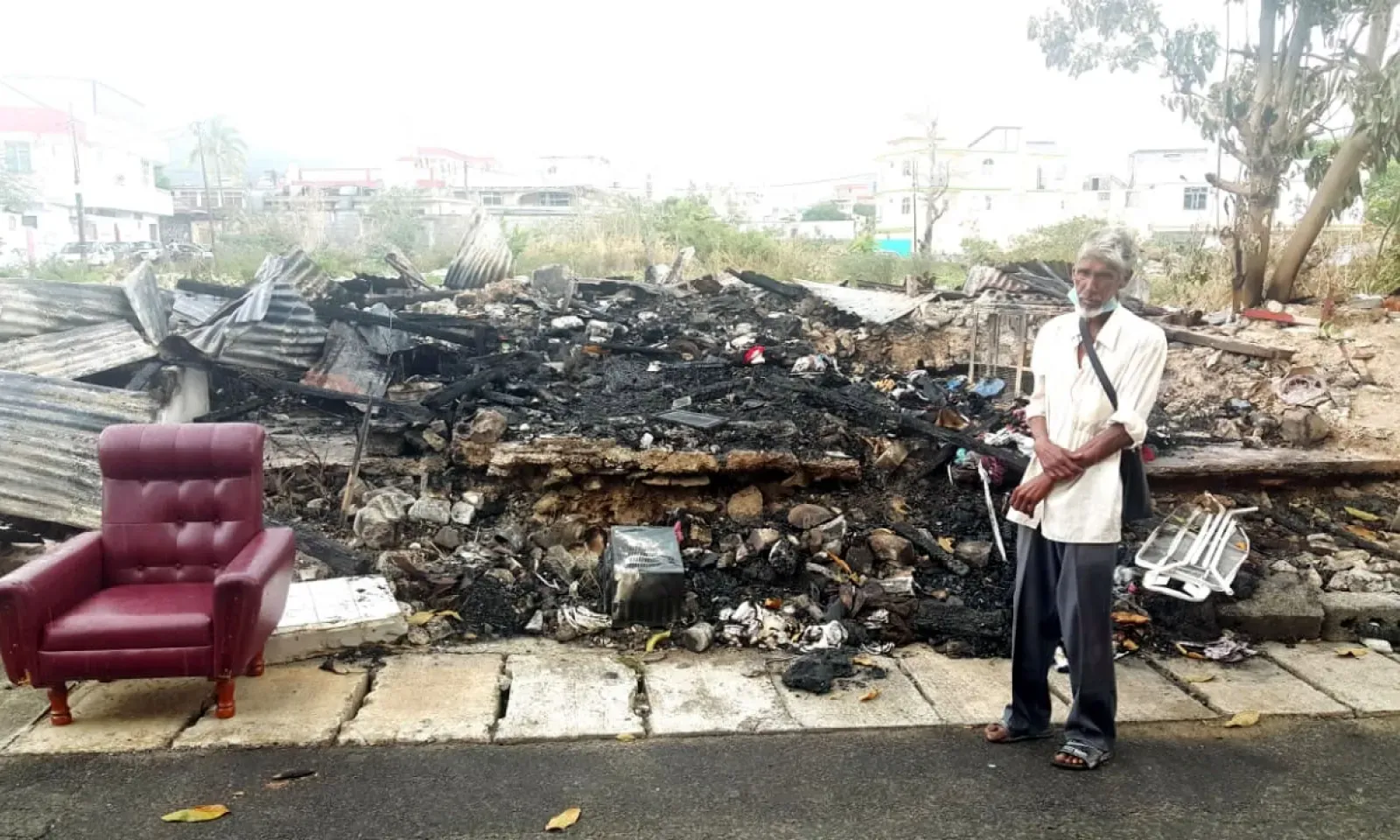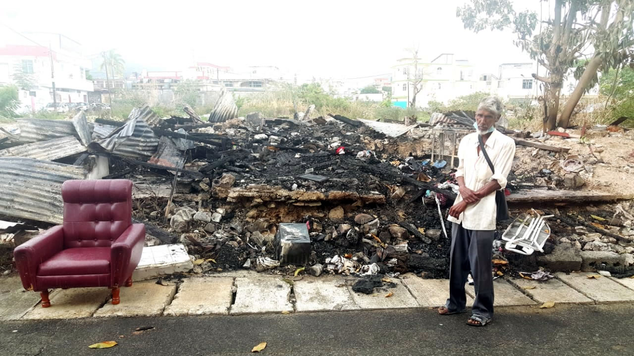 Il a perdu le peu qu’il possédait, dans un incendie. Mamade Lalmamode, 58 ans, s’était construit un abri à Port-Louis. Ce quinquagénaire, qui vit seul, est SDF depuis plusieurs années. « Je vis à l’arrière de l’église Saint-Antoine depuis plus de trois ans. Avec des feuilles en tôles, je m’étais construit une maisonnette pour avoir un abri pour la nuit », raconte-t-il.