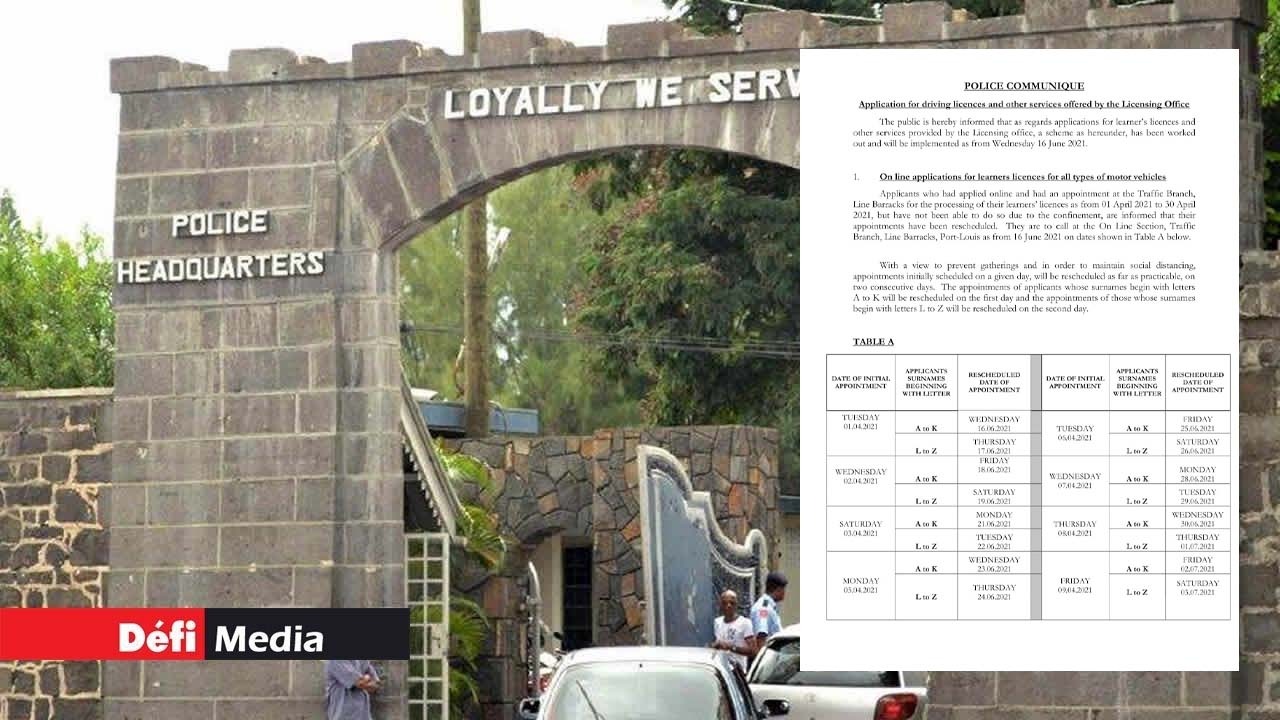 Les applications pour l'obtention des "learners" pour tous types de véhicules, effectuées en ligne prévue entre le 1er et 30 avril seront traitées par étapes aux Casernes centrales à partir du 16 juin en ordre alphabétique.
