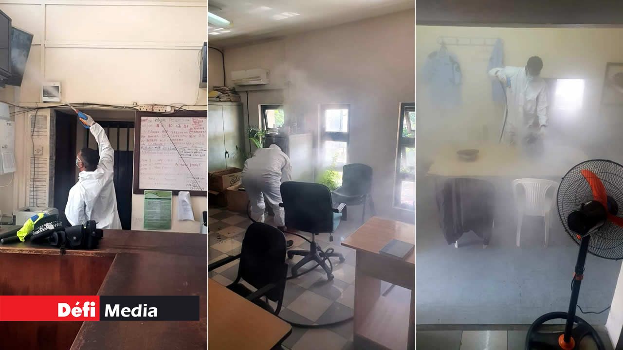 Le poste de police d'Albion a été désinfecté par des préposés de la compagnie de fumigation Pajelo Cleaning Services Ltd dans la matinée du mercredi 22 avril. Ils ont procédé à l'exercice en présence des policiers. Les véhicules ont aussi été soumis à une désinfection.