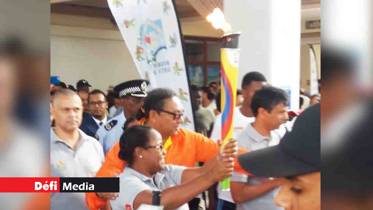 A Rodrigues, la Commissaire des Sports Rose de Lima Edouard-Ravina a été la première porteuse de la flamme des jeux qui sera présentée lors d’un parcours de 24 heures avant de revenir à Maurice.