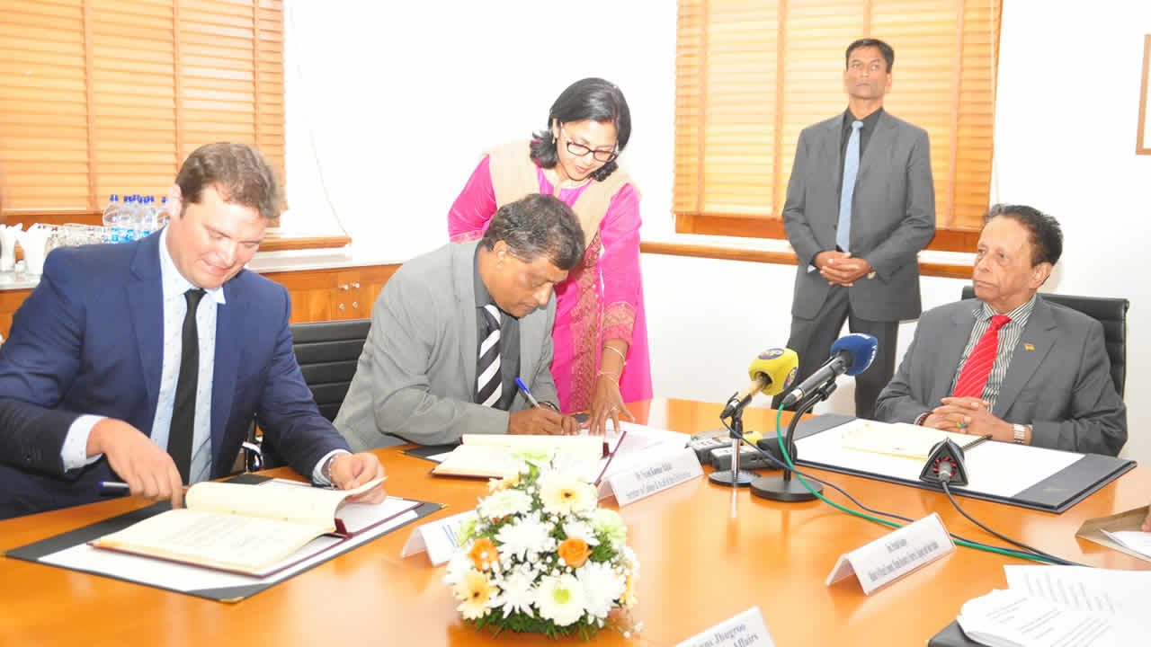 Rs 500 millions seront injectées par la société Ferme Marine de Mahébourg pour agrandir ses infrastructures. Propos de Louis Lai Fat Fur, Non Executive Director de la Ferme Marine de Mahébourg, tenus au bâtiment du Trésor, après la signature d’un accord pour l’agrandissement de la ferme.