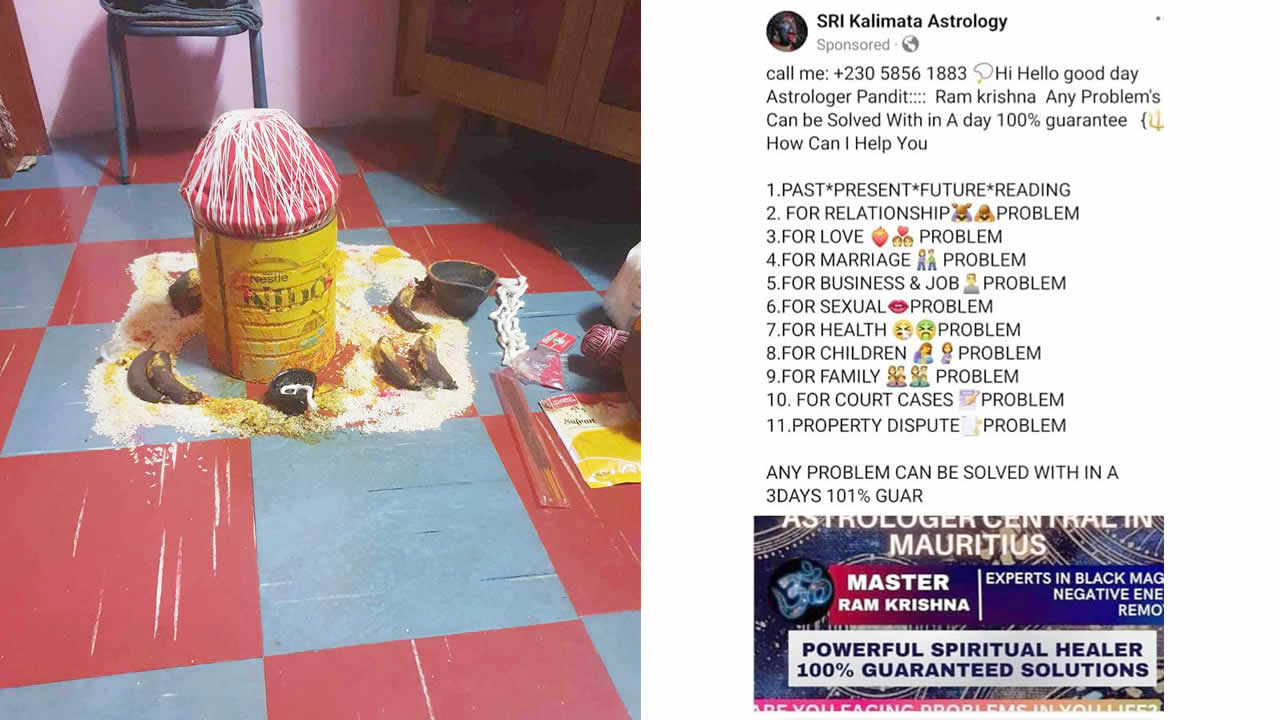 Résolue à chasser le mal et le mauvais sort de sa vie, cette femme âgée de 39 ans était tourmentée moralement, car elle n’arrivait pas à conquérir l’homme avec qui elle voulait partager sa vie. C’est en août dernier, en naviguant sur Facebook, qu’elle découvre une annonce vantant les qualités du « Pandit RamKrishna » du SRI Kalimata Astrology, un faiseur de miracles capable de résoudre des problèmes d’ordre judiciaire, professionnel ou liés au mariage et à la sexualité, entre autres. Séduite par cette annonce, Nazia croit vite au miracle. Elle place sa confiance entre les mains du Guruji RamKrishna.