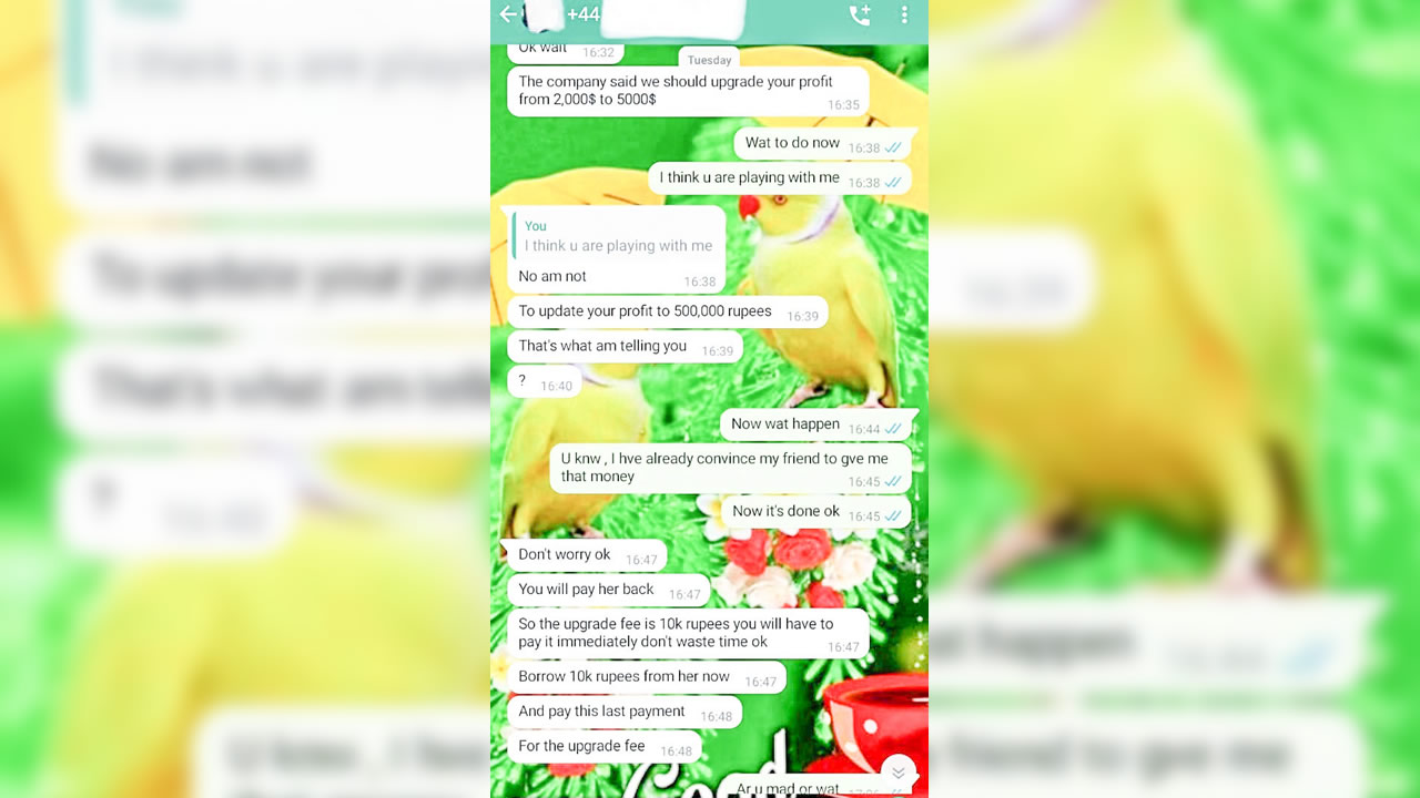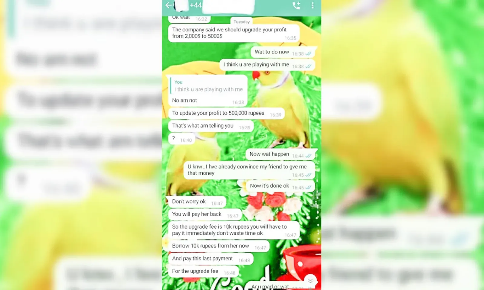 Au final, la trentenaire s’est laissée convaincre de la fiabilité du projet d’investissement. Elle a alors contacté son interlocuteur via WhatsApp qui lui a envoyé une capture d’écran prouvant que des paiements ont été effectués sur son compte. Au début, l'escroc lui a demandé Rs 3 000, puis Rs 5 000. Elle a suivi ses instructions, mais elle a flairé l’arnaque quand Joe lui a réclamé une somme additionnelle de Rs 10 000. « Kuma to don mwa sa Rs 10 000 la, to gagn Rs 400 000 », a-t-il dit à Jeshna. Une offre trop belle pour être vraie. Et c’est à partir de là qu’elle a fini par réaliser qu’elle avait affaire à un escroc en ligne. Sans savoir qu’il a été découvert, l’arnaqueur lui a demandé un montant supplémentaire de Rs 5 000 représentant les frais pour lui permettre de transférer Rs 500 000 de gain sur le compte bancaire de Jeshna. Cependant, celle-ci avait déjà compris que son compte Facebook a été piraté.