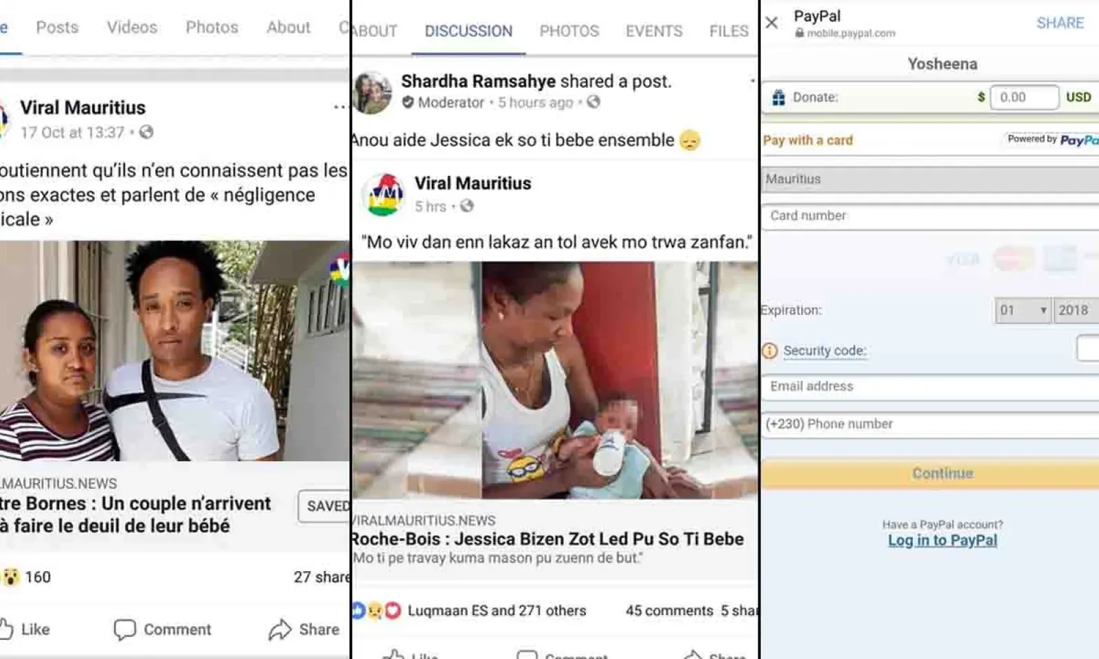 Il y a, par exemple, le cas d’une jeune maman repris par le site. «Il s’agit d’un appel à solidarité pour, a priori, aider cette jeune mère. Nous avons pris contact avec cette dernière. Elle nous a affirmé qu’elle n’a jamais donné la permission à Viral Mauritius de lancer un appel à solidarité en son nom. Elle a précisé qu’elle n’a pas non plus reçu d’argent de la plateforme», explique un journaliste du Défi Media Group.