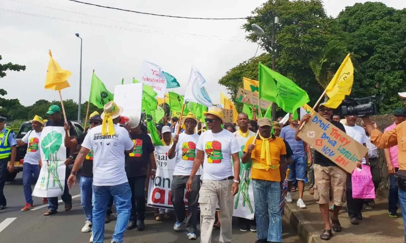 « Nou la zordi pou dir ki tou drwa travay economik ek sosyal bizin rant dan konstitisyon. Drwa la grev, drwa pou enn lavi desan, drwa pou enn lozman, drwa pou enn ledikasyon», a lancé Ashok Subron.