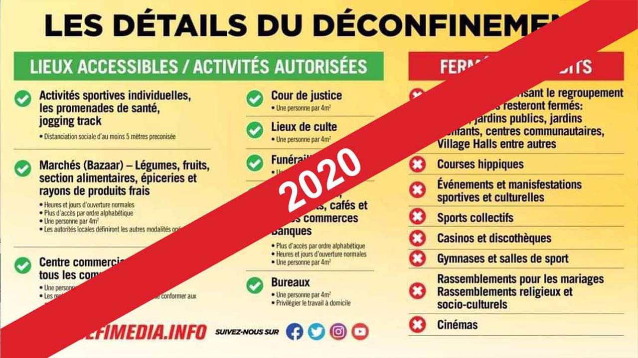 Attention à cette réalisation graphique, qui circule sur les réseaux en ce mercredi 21 avril. Il s’agit d’une illustration accompagnant un article publié sur nos plateformes numériques l’année dernière, lors du déconfinement. Elle n’a donc pas été publiée ce mercredi 21 avril 2021, comme ont voulu faire accroire certains internautes pour donner l’impression que la réalisation graphique a été présentée par Le Défi Media Group en marge du déconfinement suite à la seconde vague de Covid-19. Nous demandons aux internautes de visiter notre site Web, www.defimedia.info, et notre page Facebook pour suivre l’actualité.