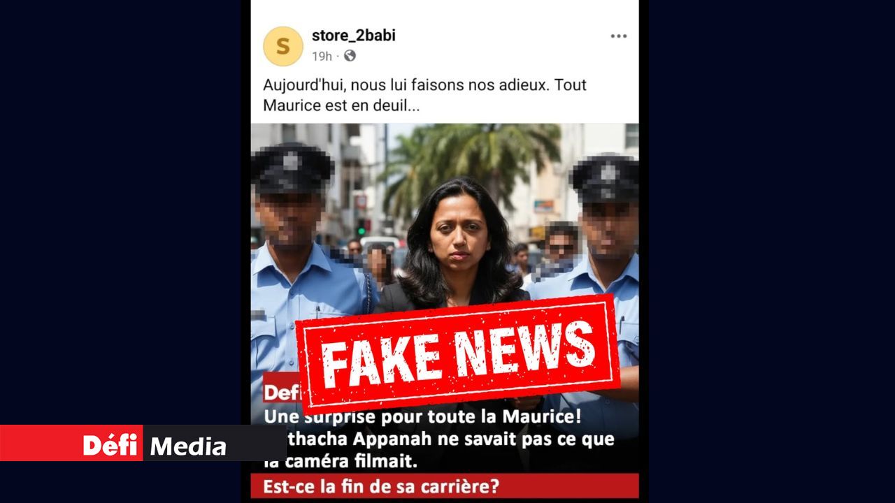 Une fausse nouvelle, sous la forme d’une photo portant le titre « Une surprise pour toute la Maurice ! Natacha Appanah ne savait pas ce que la caméra filmait. Est-ce la fin de sa carrière ? » et affichant le nom ainsi que le logo du Défi Media Group, circule actuellement sur les réseaux sociaux.