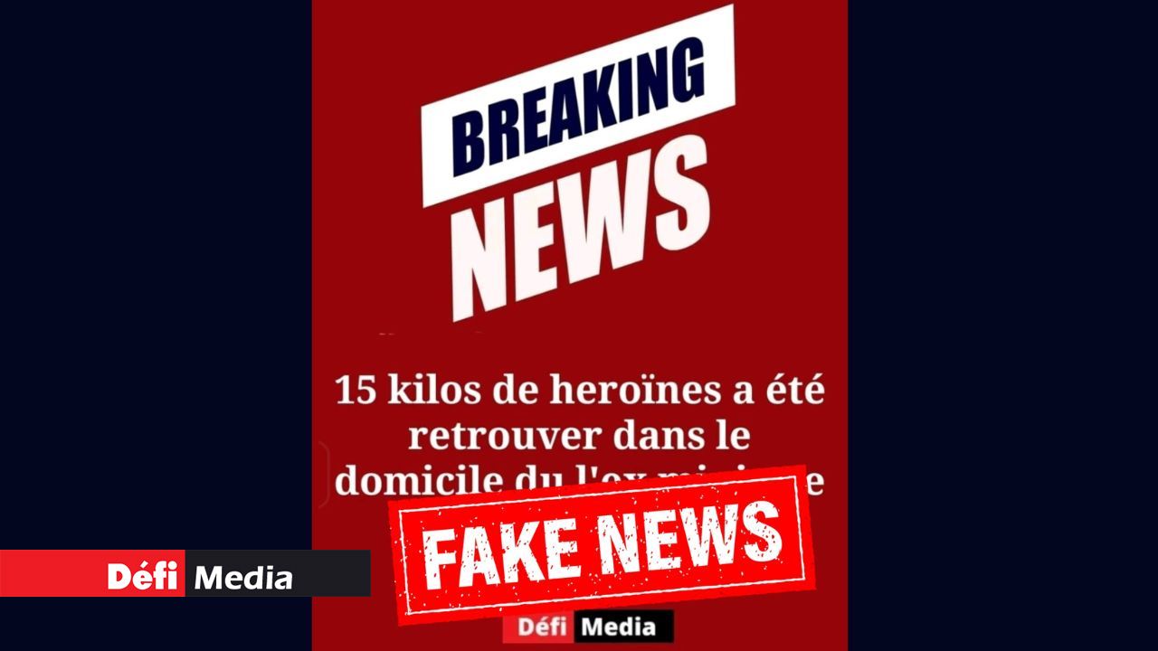 Ce lundi 26 mai, il nous a été signalé qu’une capture d’écran, arborant le logo « Défi Media » et laissant croire que quinze kilos d’héroïne auraient été saisis au domicile d’un ancien ministre, circule sur les réseaux sociaux. Il s’agit d’une « fake news ».