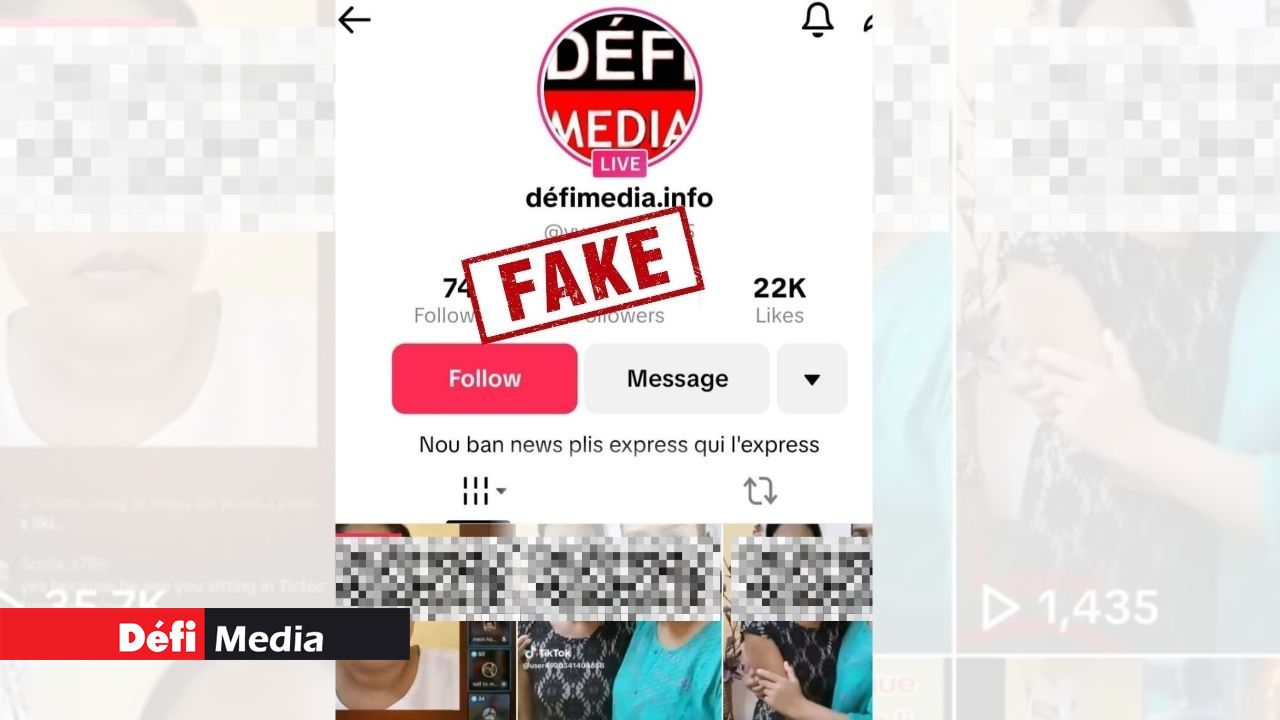 Il nous a été signalé, ce lundi 2 juin, qu’un internaute a utilisé le nom et le logo de Défi Media pour créer un faux compte sur TikTok. Il exploite cette plateforme et ce faux compte pour diffuser des propos insultants, offensants et des injures.