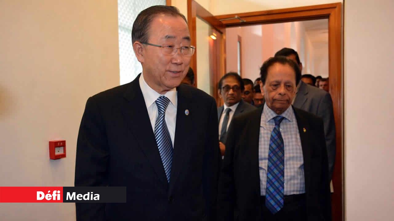 Le secrétaire général de l’Onu a eu bien du mal à respecter son programme chargé lundi. La session de travail qu’il a eue avec le Premier ministre, sir Anerood Jugnauth, et plusieurs ministres, au bâtiment du Trésor, a duré plus longtemps que prévu. Ce qui a chamboulé son emploi du temps Après une conférence de presse conjointe avec le chef du gouvernement mauricien, il s’est rendu au centre de conférence de Trianon pour s’adresser aux acteurs des Sustainable Development Goals. Puis direction Pailles, au centre Swami Vivekananda où s’est tenue la conférence de l’International Council for Commercial Arbitration. Puis cap sur le château de Réduit où l’attendait la présidente de la République Ameenah Gurib-Fakim pour un déjeuner officiel. Près d’une demi-heure de retard pour la cérémonie de remise de la distinction de Docteur Honoris Causa, à l’université de Maurice. Attendu à 14 h 30, le distingué visiteur s’est pointé vers 15 heures. Il a tout de même pu souffler en début de soirée où il a reçu, à son hôtel, le chef juge, la Speaker de l’Assemblée nationale et le leader de l’opposition. C’est à l’hôtel Maritim, à Balaclava, qu’il a terminé la soirée, autour d’un dîner offert par le ministre des Affaires étrangères Vishnu Lutchmeenaraidoo.