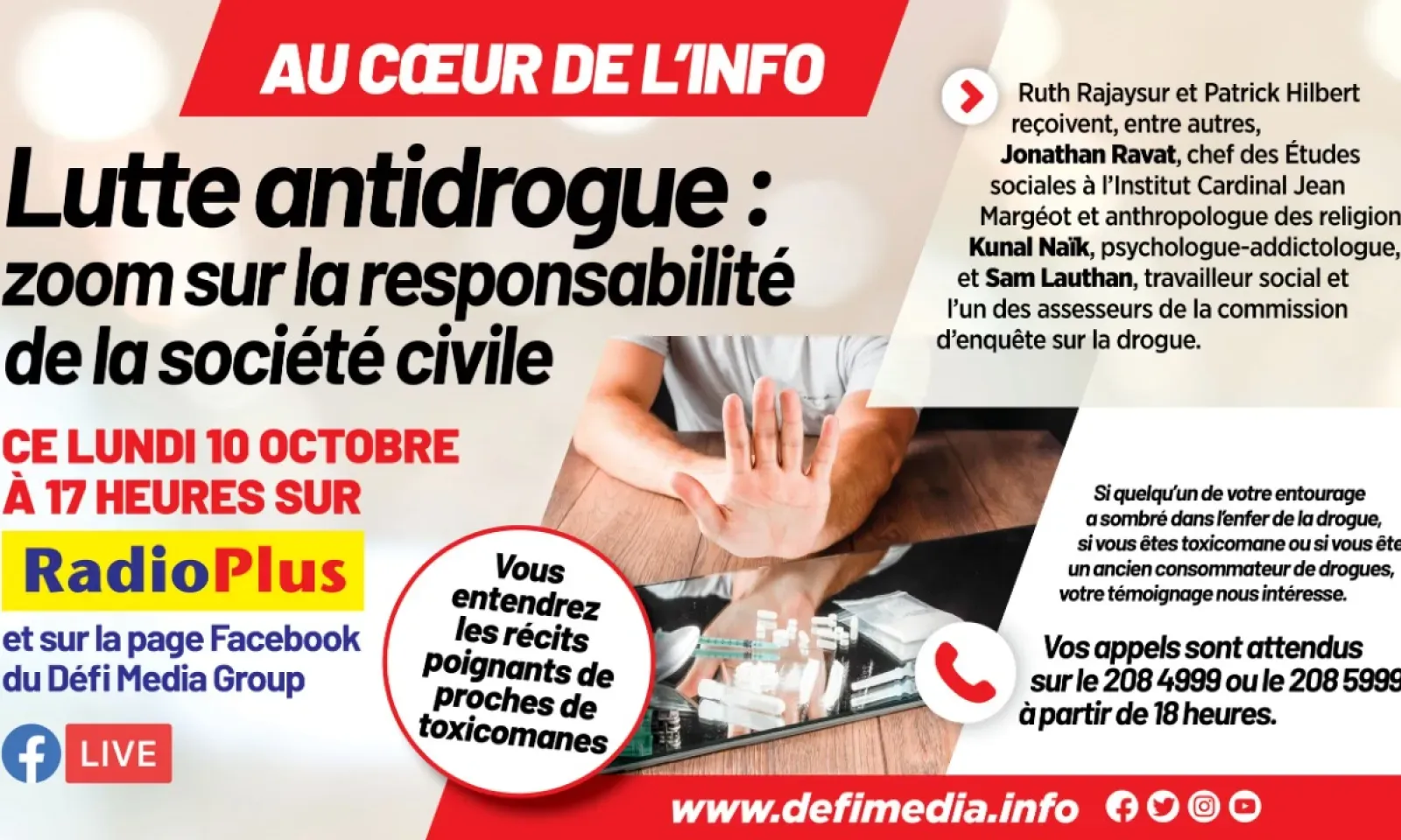 Ruth Rajaysur et Patrick Hilbert reçoivent, entre autres, Jonathan Ravat, chef des Études sociales à l’Institut Cardinal Jean Margeot et anthropologue des religions, Kunal Naick, psychologue-addictologue, et Sam Lauthan travailleur social et l'un des assesseurs de la commission d'enquête sur la drogue.