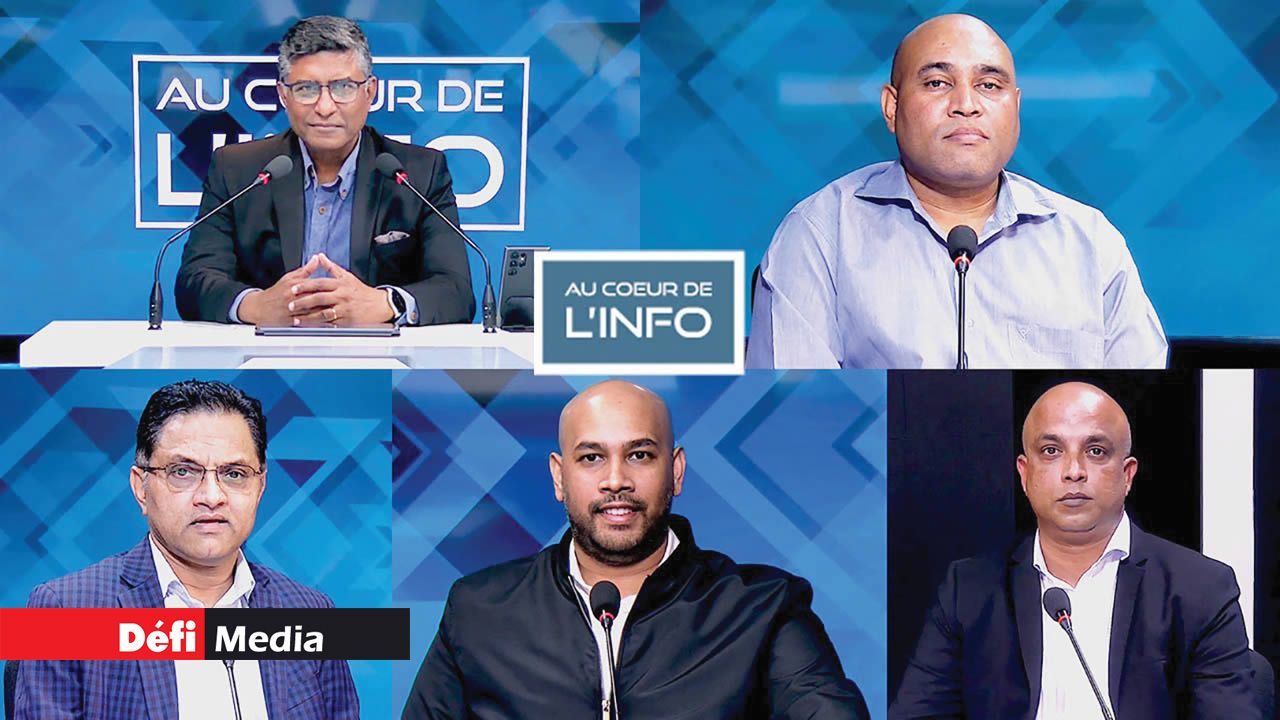 Avinash Chettiar, directeur technique d’Emtel, Ludovic Constant, directeur de Jacey Computer System Ltd, Vrigesh Futta, directeur du Mauritius Emerging Technologies Council, et Sunjay Mungur, CEO de FinClub, étaient sur le plateau de l’émission « Au cœur de l’info » animée ce jeudi par Prem Sewpaul.