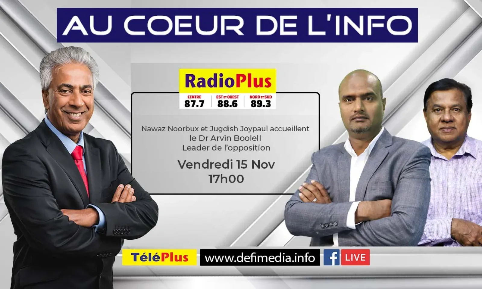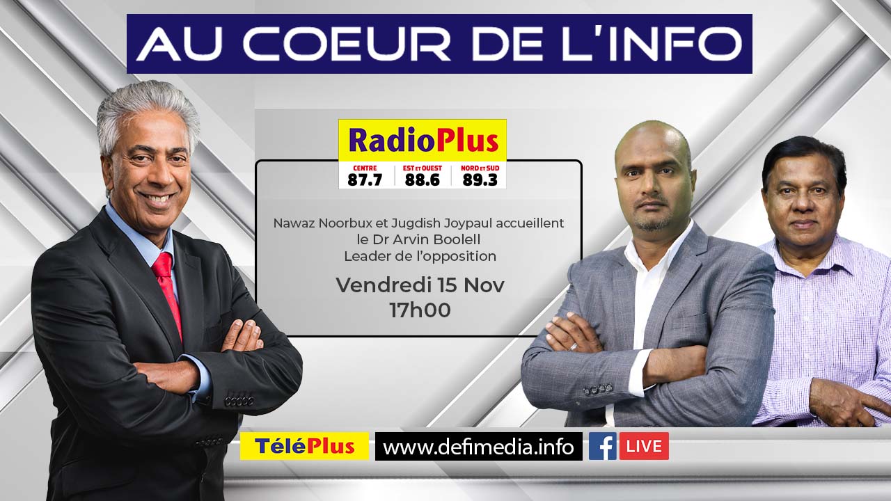 Le nouveau leader de l’opposition, le Dr Arvin Boolell, sera l’invité de l’émission Au Cœur de l’Info, ce vendredi après-midi, 15 novembre, à partir de 17h. Le député du PTr répondra aux questions de Nawaz Noorbux et de Jugdish Joypaul.