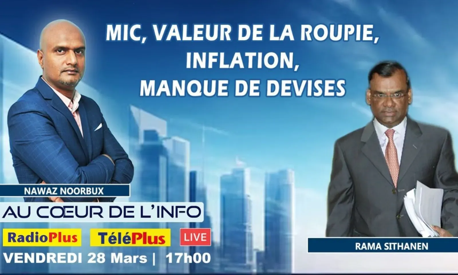 Rama Sithanen sera l'invité de Nawaz Noorbux ce vendredi dans l'émission « Au Coeur de l'Info ». Le scandale lié à la Mauritius Investment Corporation (MIC) sera au centre des discussions. Nous reviendrons ainsi sur les soupçons de malversations et de connivence politique pour détourner des fonds publics au sein de cette entité créée en pleine pandémie de la Covid pour soutenir des entreprises en difficulté.