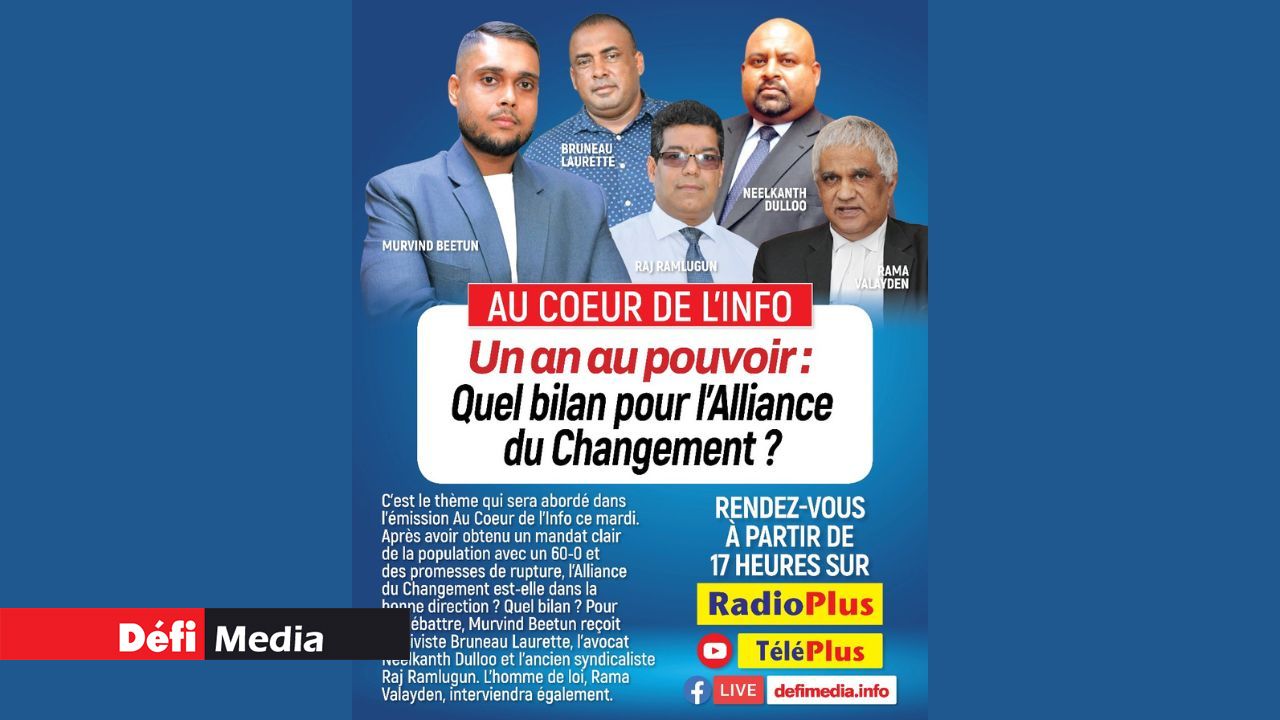 Un an au pouvoir : quel bilan pour l’Alliance du Changement ? C’est le thème qui sera abordé dans l’émission « Au Cœur de l’Info » ce mardi 11 novembre. Après avoir obtenu un mandat clair de la population, avec un 60-0 et des promesses de rupture, l’Alliance du Changement est-elle sur la bonne voie ? Quel bilan dresser ?