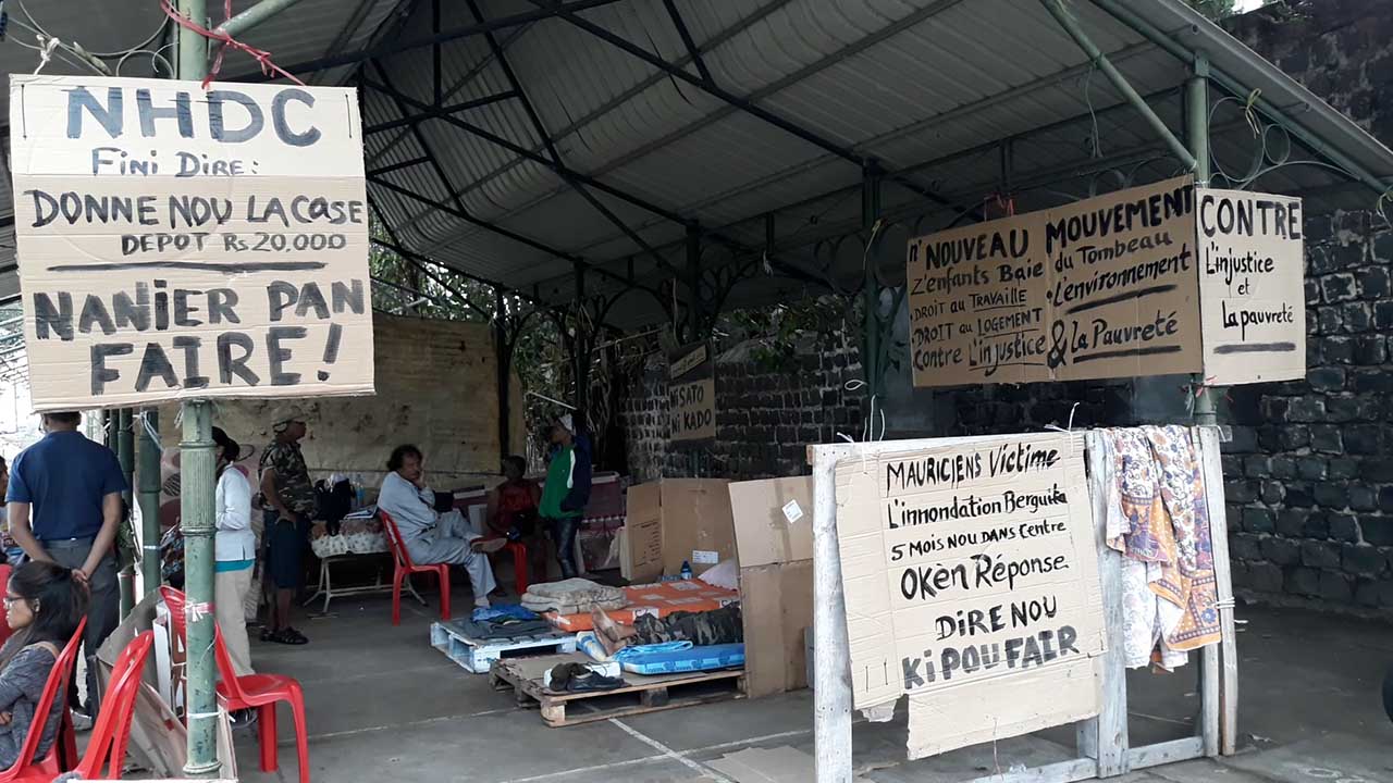 « Les sinistrés de Berguitta partent travailler le matin et reviennent au Jardin de la Compagnie pour y passer la nuit. » C’est ce qu’affirme Baby Joson, porte-parole de Debout Citoyen, qui soutient les grévistes de la faim. Forcés d’évacuer les centres de refuges, 16 sinistrés ont élu domicile au Jardin de la Compagnie depuis une semaine. Ils bravent le froid et le vent glacial pour soutenir leur demande d’un logement social ou un appartement de la National Housing Development Company Ltd (NHDC).
