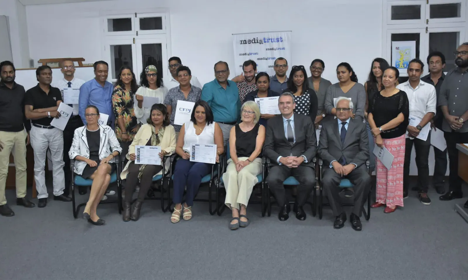 Après deux semaines de formation intensive avec le CFPJ, les participants sont désormais dotés des outils nécessaires pour encadrer ceux qui exercent des métiers du journalisme dans leurs entreprises de presse respectives. La cérémonie de remise de certificats a eu lieu le vendredi 5 juillet 2019 au siège du Media Trust à Port-Louis en présence d’Emmanuel Cohet, l’ambassadeur de France à Maurice.
