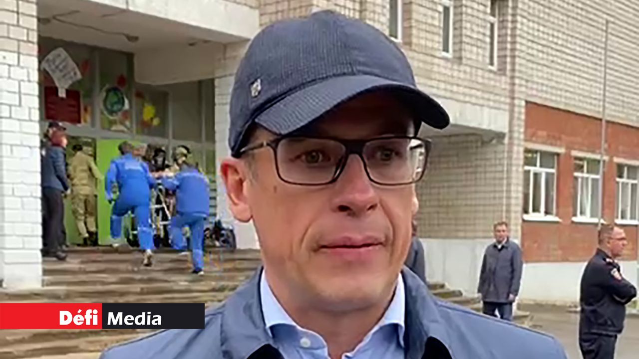 Il s'exprimait devant l'école n°88 d'Ijevsk. Derrière lui, on pouvait voir des personnels médicaux entrer dans le bâtiment au pas de course, certains transportant un brancard.