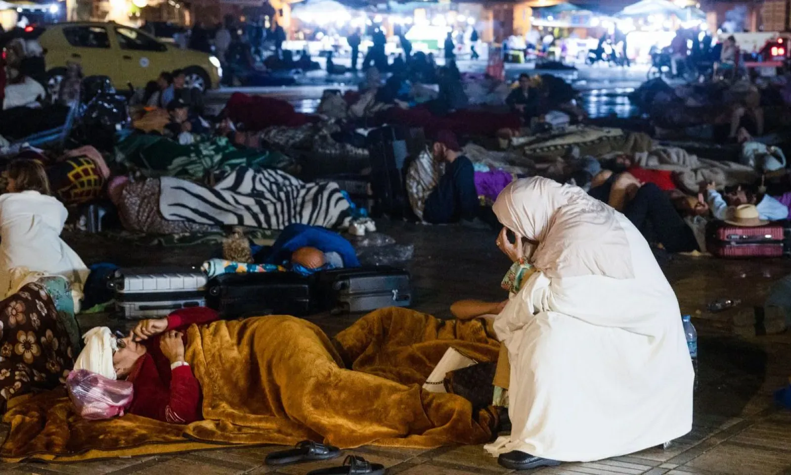 Une correspondante de l'AFP a vu des centaines de personnes affluer sur cette place emblématique de la ville ocre pour y passer la nuit, de crainte de répliques. Certains étaient munis de couvertures, d'autres dormaient à même le sol.