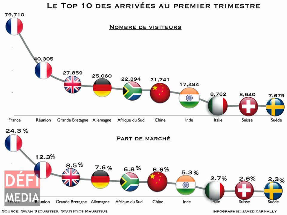 De janvier à mars, selon les données de Statistics Mauritius, le nombre total de visiteurs a augmenté de 12,5 % pour atteindre 327 856 par rapport à la même période en 2015. Cette année, le pays compte attirer, à nouveau, un nombre record de 1,23 millions de visiteurs, avec des recettes estimées à Rs 54 milliards.