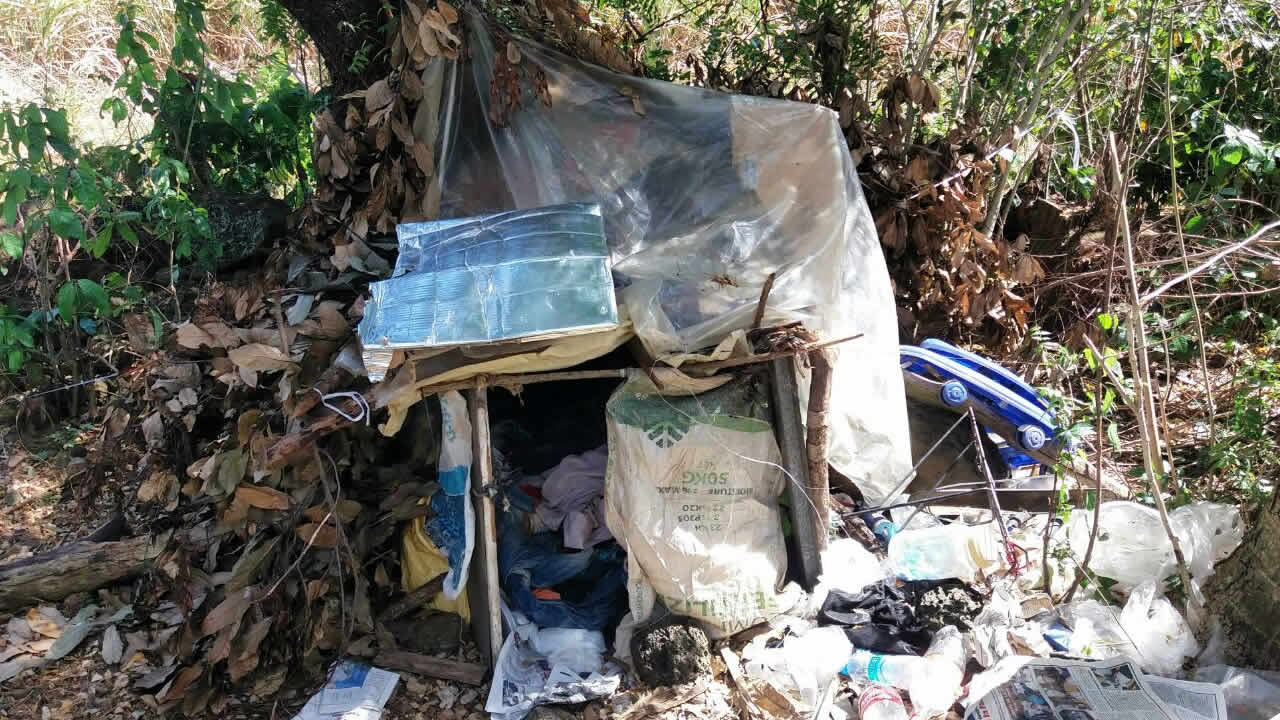 C’est tout près d’un arbre, au milieu des feuilles sèches qu’il s’est installé. Du bois, du plastique, des cartons, des cordes, de vieux journaux : le jeune homme avait pris tout ce qu’il fallait pour se bâtir un logis de fortune. Pour se protéger des intempéries, il avait attaché une bâche en pastique à l’arbre pour recouvrir son abri. Il avait emporté avec lui quelques chemises et T-shirts.