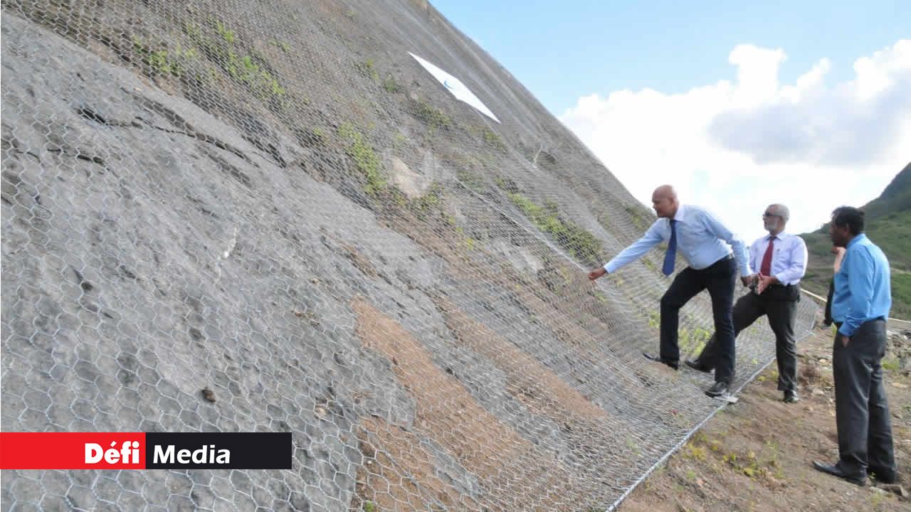 C’est d’abord vers le tronçon Ripailles-Valton que Nando Bodha s’est dirigé pour faire un constat de la situation. Sur place, après quelques discussions avec les experts réunionnais de Geotechnical Services Ltd, Nando Bodha a dressé un tableau de la situation avec les journalistes :